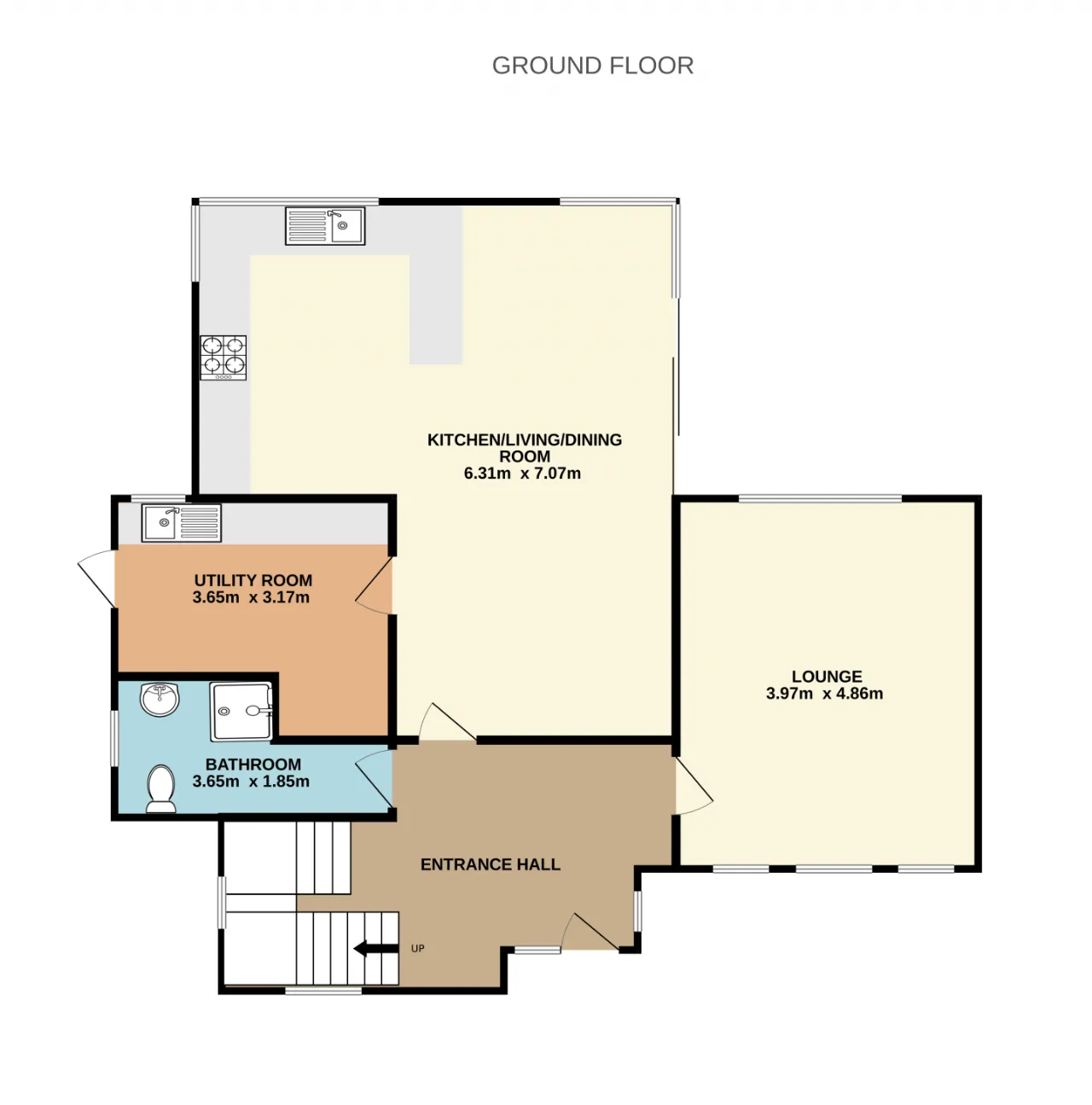 The ground floor is further complemented by a well-appointed bathroom and a practical utility/pantry area, offering excellent storage and additional functionality. As well as this, underfloor heating is enjoyed throughout the ground floor.