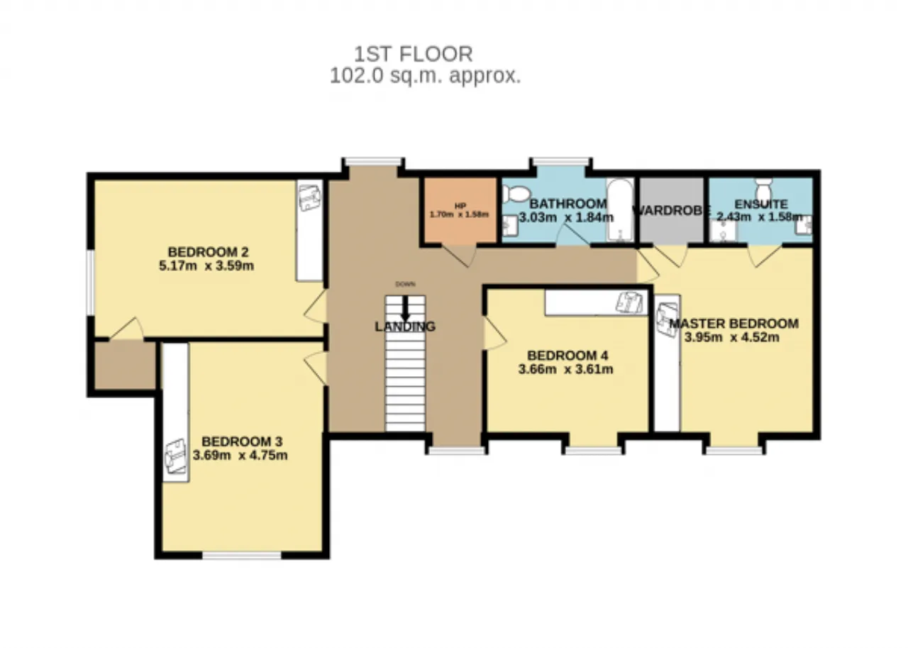Main Bedroom 4.20m x 3.65m This is a large double bedroom that benefits from built in wardrobes with vanity desk, timber flooring, walk in wardrobe and an en-suite.