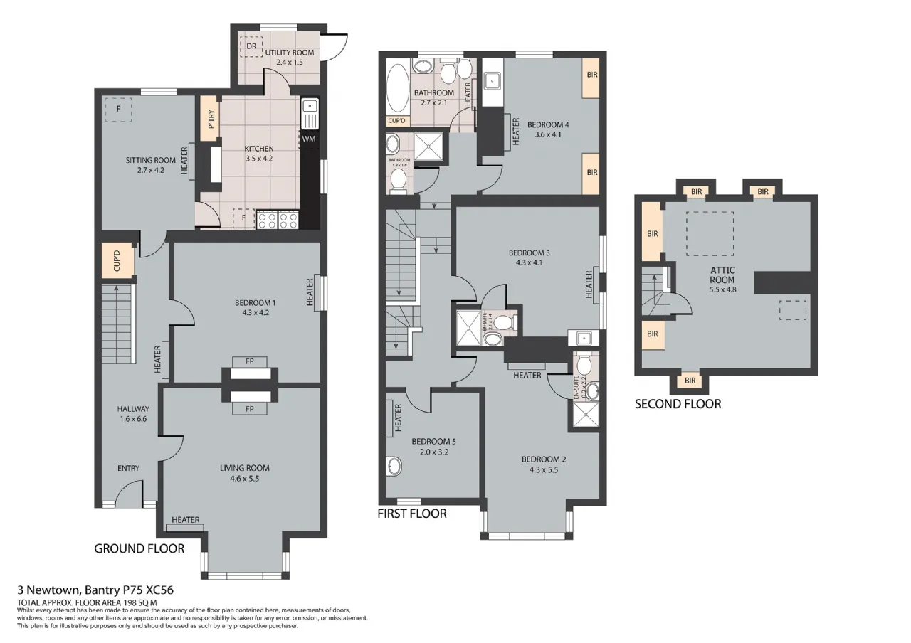 The accommodation includes entrance hallway, lounge, sitting room, kitchen, utility, 5 bedrooms (2 ensuite), family bathroom, additional wc on the first floor and a spacious attic room.