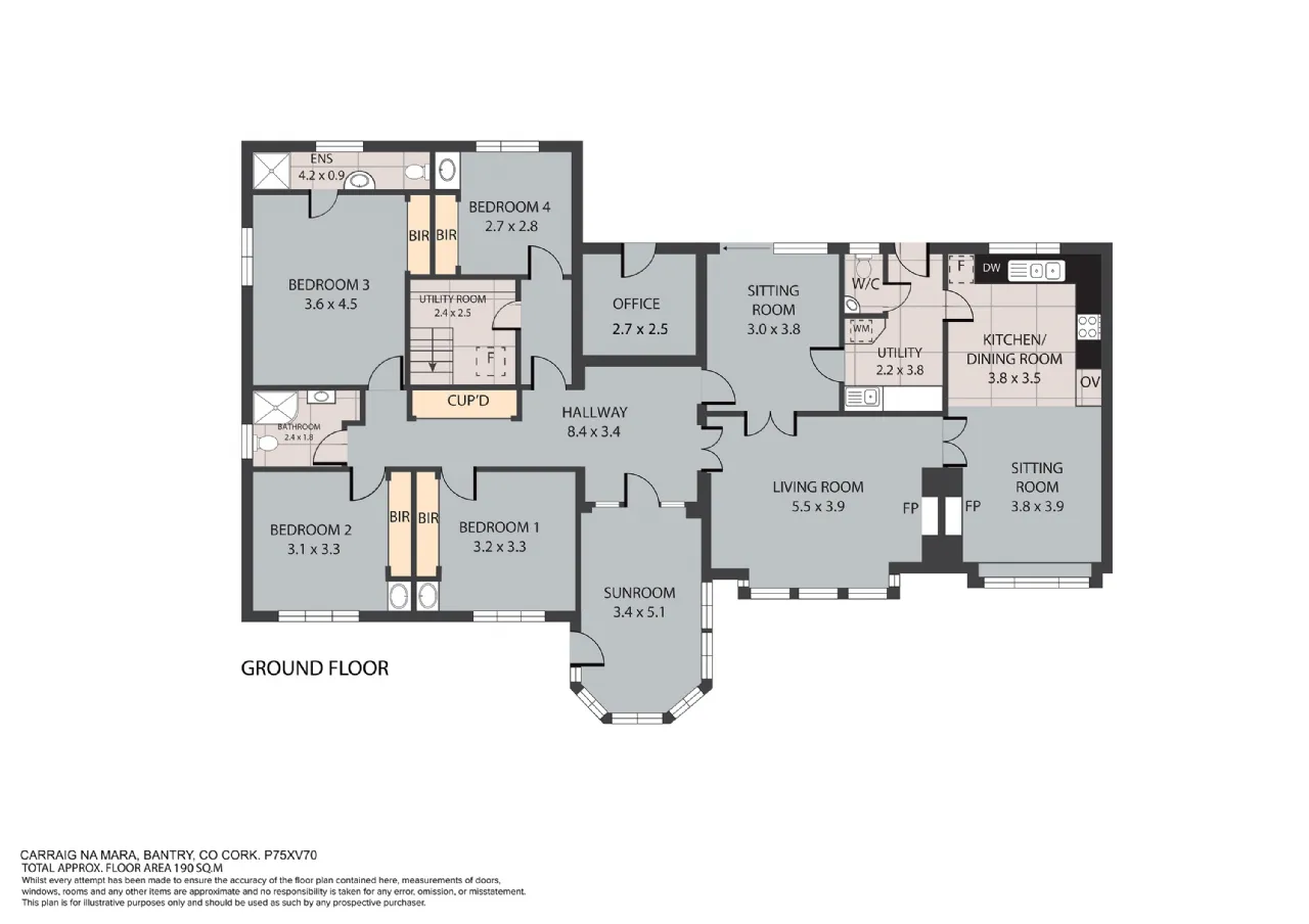 The accommodation includes sunroom leading to hallway, living room, sitting room, kitchen / dining room, family room, office, wc, utility, 4 bedrooms with master ensuite and family bathroom. There is an accessible floored attic upstairs.
