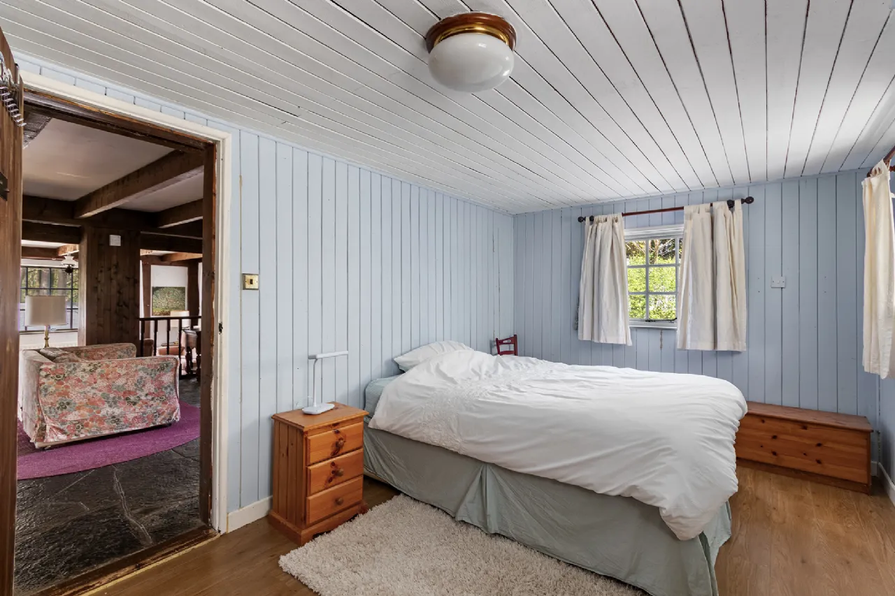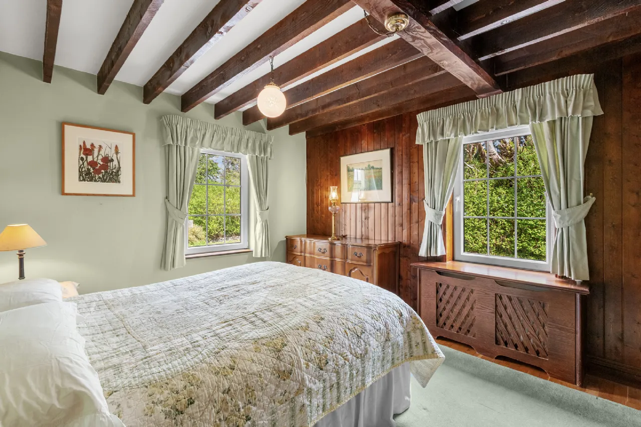 The ground floor features an en-suite bedroom, guest wc, and a practical store, while upstairs includes two more well-appointed bedrooms and a family bathroom. It can serve as a private guesthouse or be seamlessly integrated with the main home for expanded living. Grounds Two Trees and The Barn are set amidst beautifully landscaped grounds featuring mature trees, manicured lawns and natural hedging. A charming single-storey wooden cabin offers the perfect space for a studio, workshop, or creative haven.
