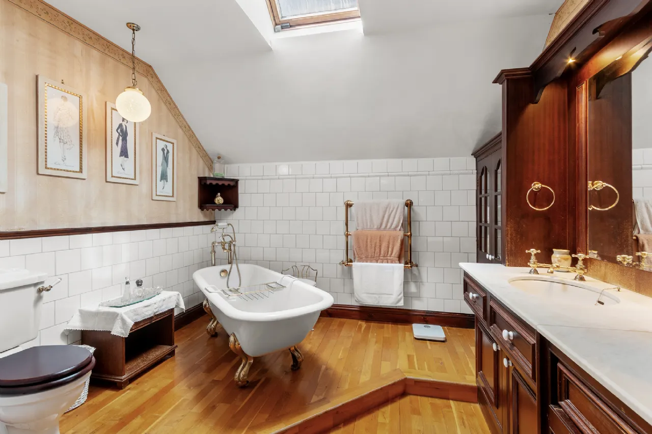 Upstairs hosts four generously sized bedrooms including a spacious bedroom with en-suite and dressing room, library and a family bathroom. The home is thoughtfully designed for both relaxed family living and elegant entertaining. The Barn Adjacent to the main house, The Barn is a fully restored three-bedroom guest cottage that exudes character. With an open-plan kitchen, dining, and living space complete with an open fireplace, the cottage offers a cozy, luxurious retreat.