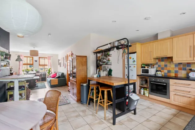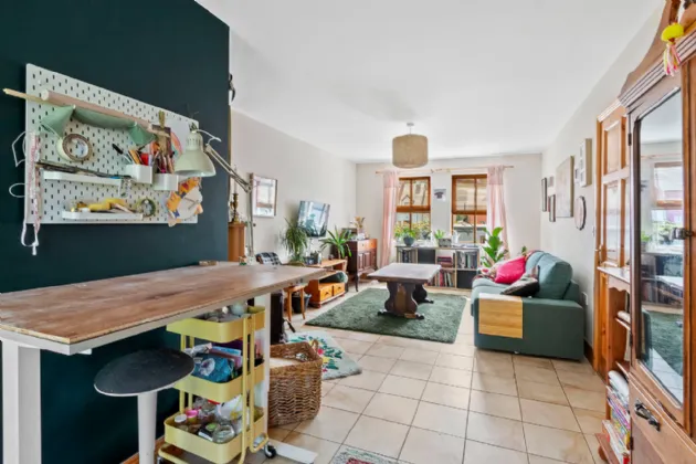 The house is bright, spacious and finished to an excellent standard. The property has 1,227 square feet approx. of living space and enjoys many features including pvc double glazed windows, solid fuel stove with fire surround, tile and timber flooring throughout, patio yard, generous garden area to the rear.