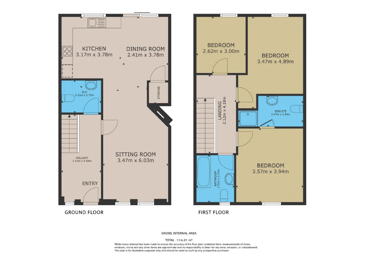 The accommodation includes entrance hall, sitting room, kitchen/dining room and guest wc downstairs. There are 3 bedrooms, one having the benefit of an ensuite, and a family bathroom on the upper floor.