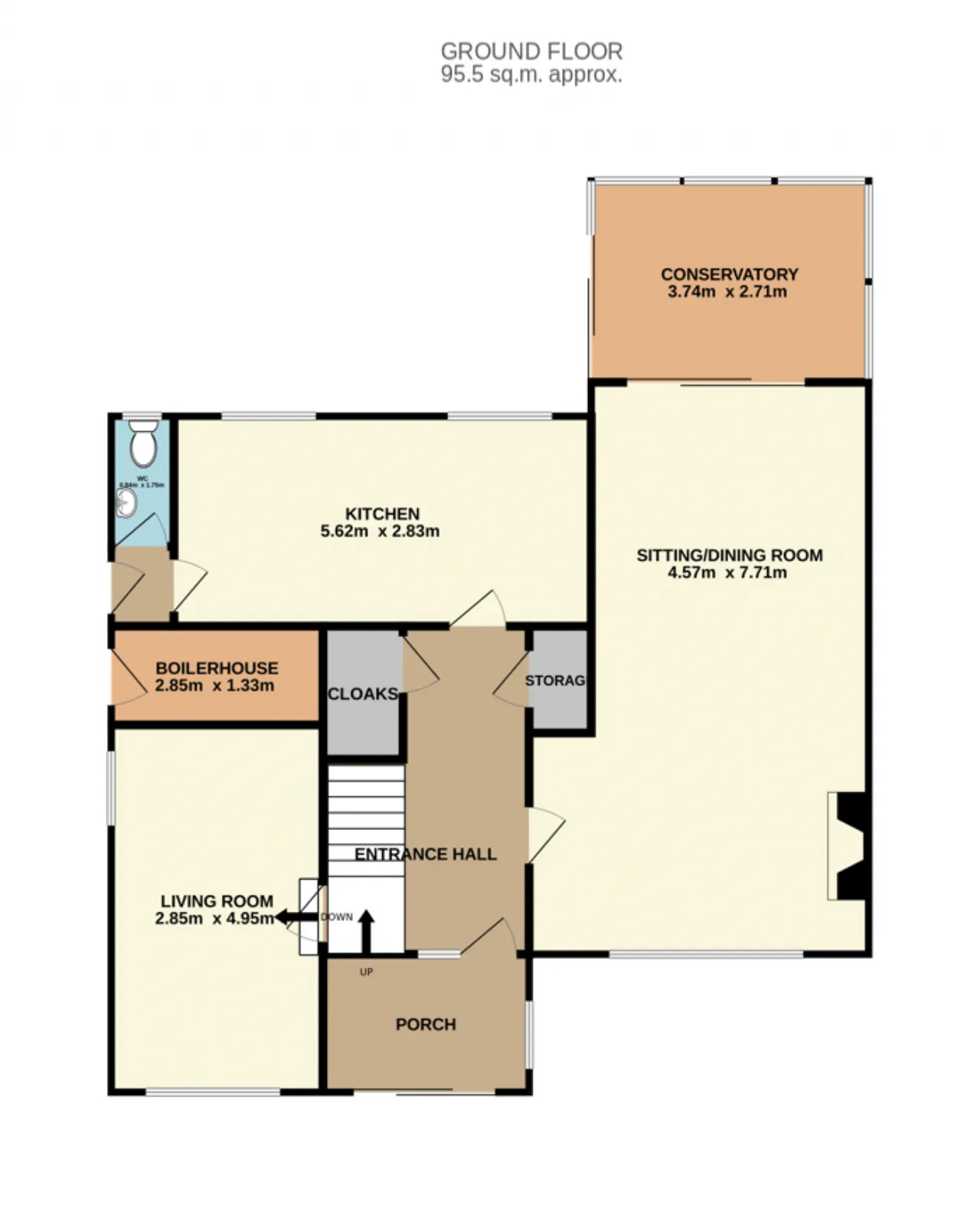 Conservatory 3.74m x 2.71m Bright south facing conservatory space with triple aspect windows, tiled floors and French sliding door giving access to the rear garden.
