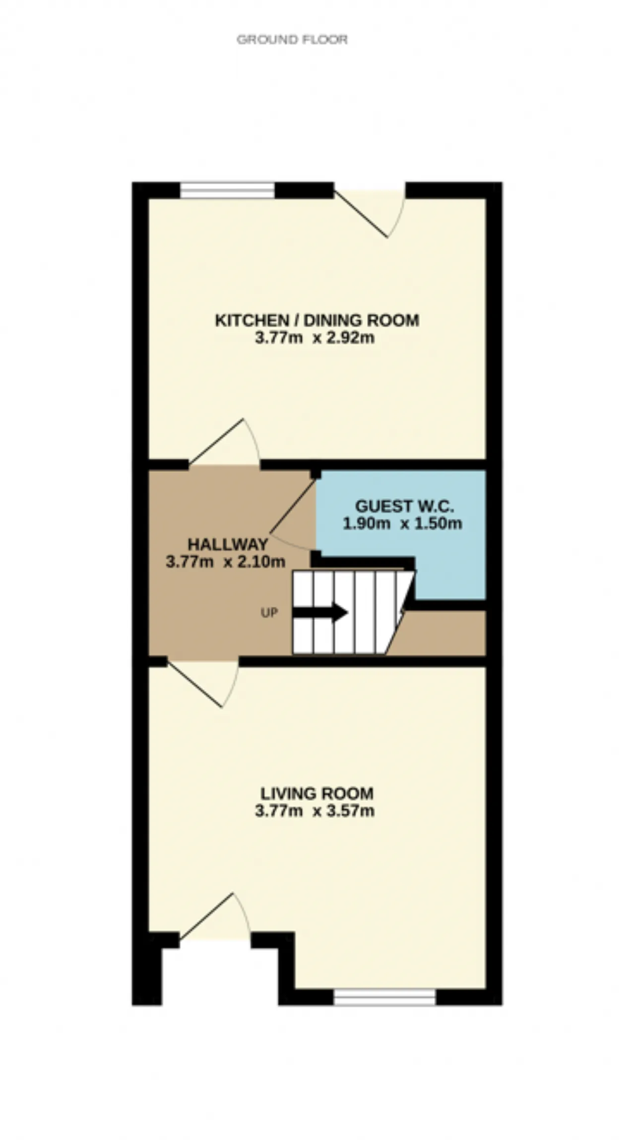 Hallway 2.10m x 3.76m Laminate flooring continues from the living room through the hallway area and into the kitchen. There is access to the stairway with a guest W.C underneath. The built in units provide neat storage for all outdoor wear.
