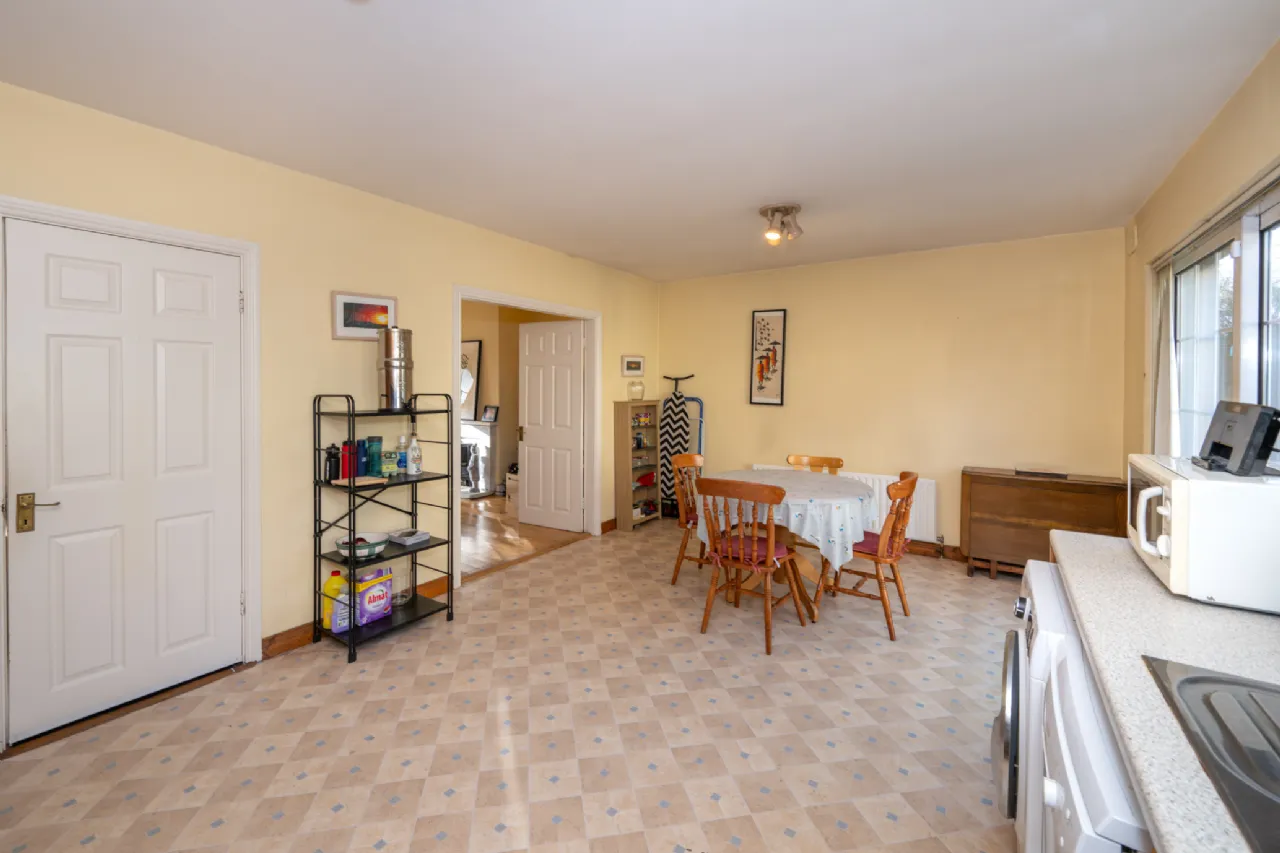 Kitchen/Dining Area 5.87m x 3.79m Located to the rear of the home is an open plan kitchen/dining area. The kitchen is well-fitted with floor and eye-level units, a selection of premium kitchen appliances and a tiled splash back. The dining area consists of an open reception space that overlooks the rear garden through a glass sliding door.