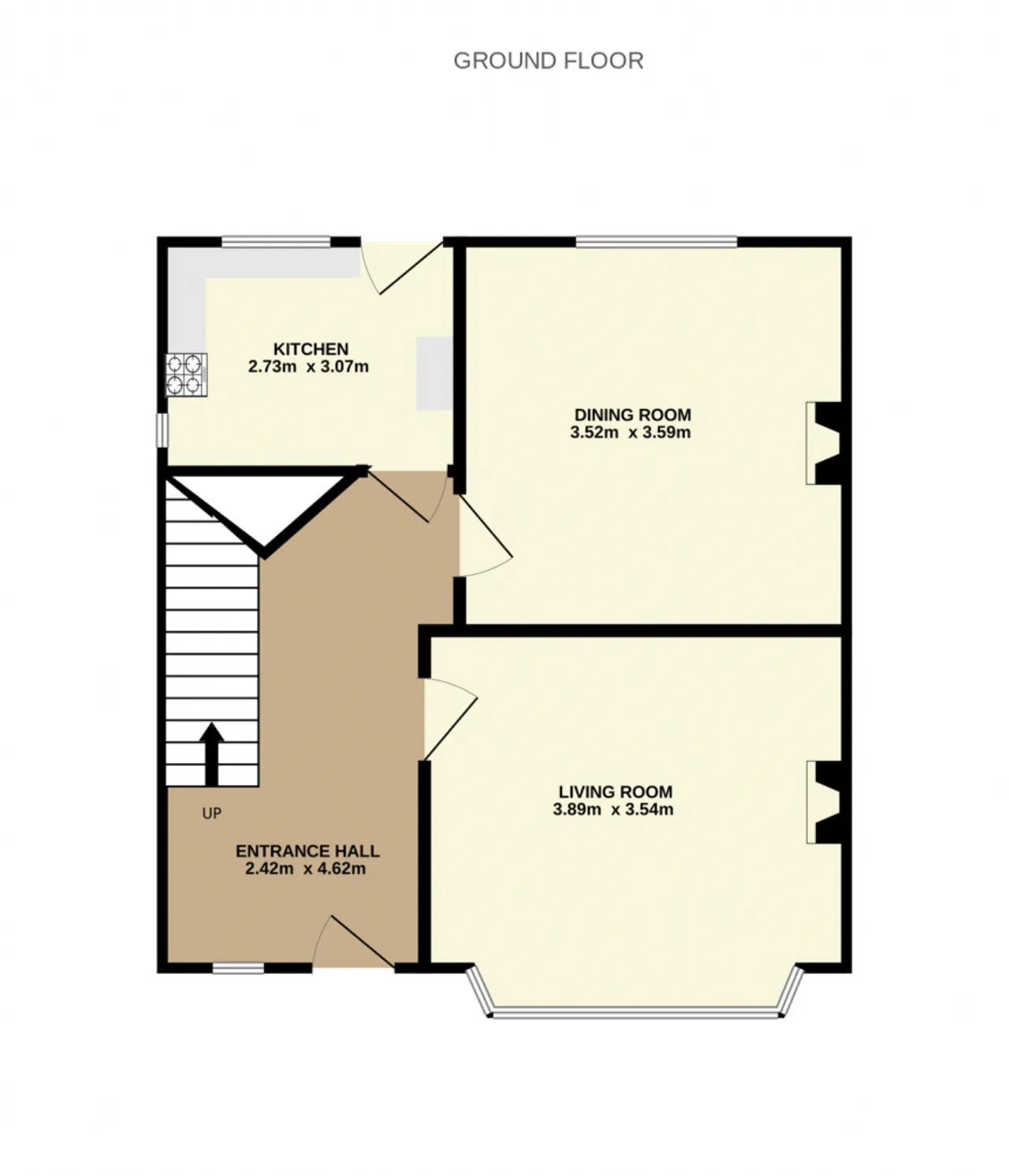 Kitchen 2.73m x 3.07m The kitchen benefits from floor and eye level units, a gas hob and window overlooking the rear garden. The kitchen also gives access to the rear garden.