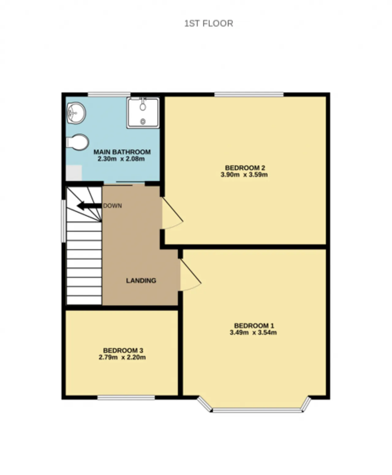 Bedroom 1 3.49m x 3.54m Large double bedroom overlooking the front of the property with laminate wood flooring and a large bay window.