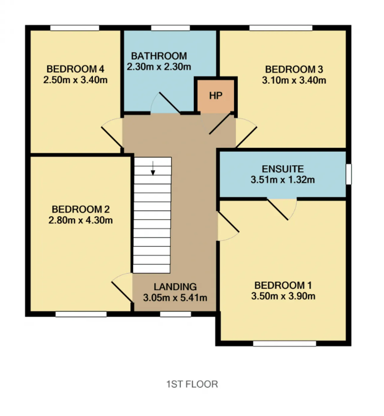 Landing Carpet flooring, Curtains, Stira stairs to attic which is floored.