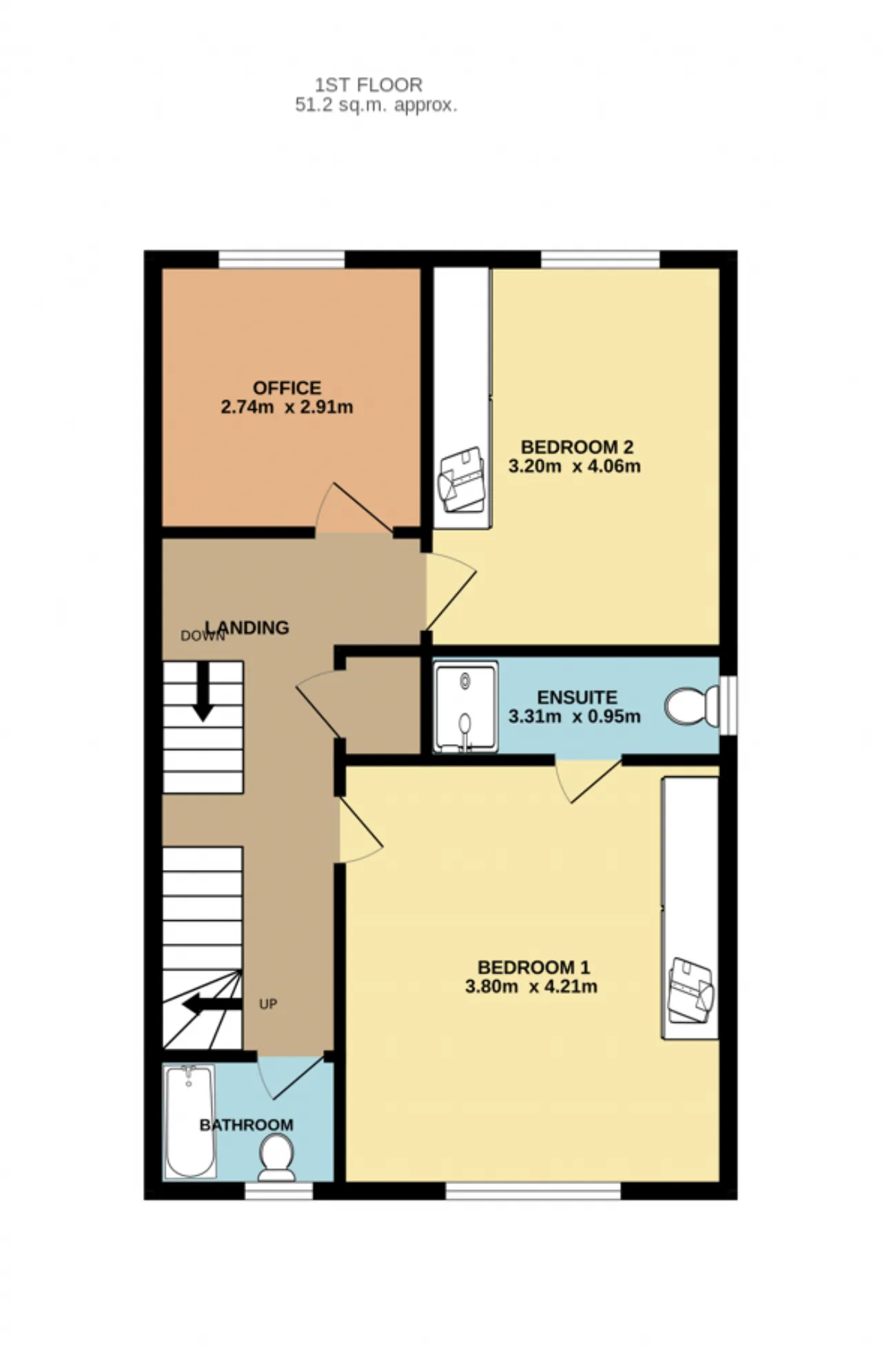 Bedroom 3 2.74m x 2.91m Spacious bedroom well fitted with built in wardrobe and office desk.