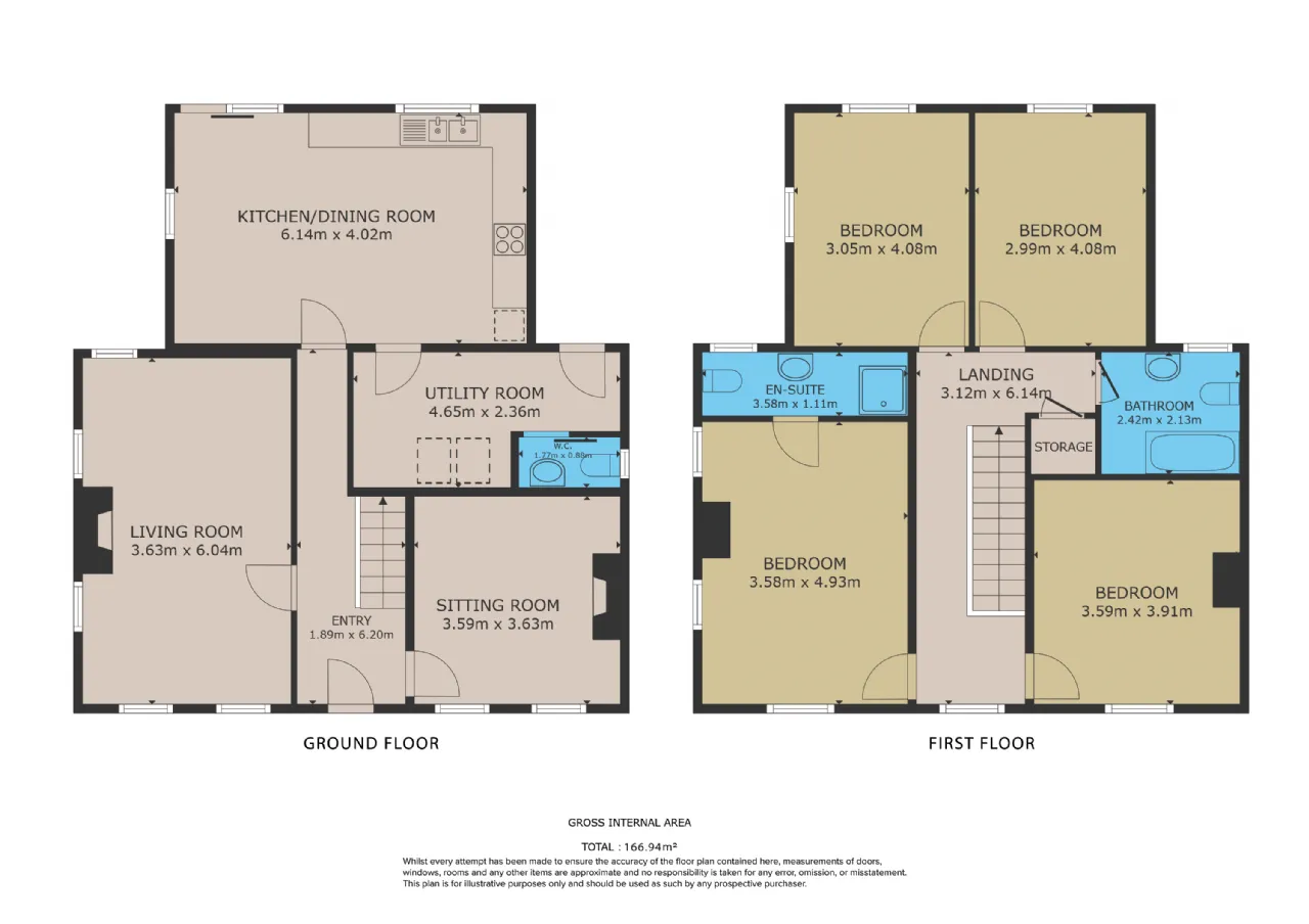 Upstairs, the property boasts four generously sized bedrooms, each with ample natural light and wooden flooring. The master bedroom includes an en-suite bathroom and a family bathroom serves the remaining bedrooms.