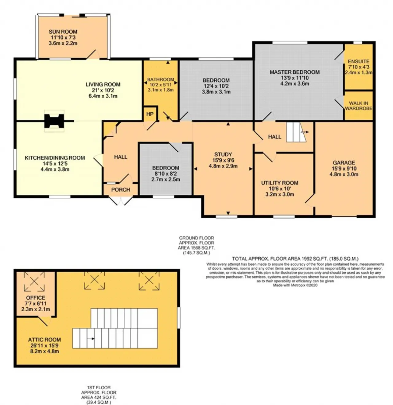 The bright interior of the property comprises an open plan living area with kitchen/dining area off, sunroom, 3 bedrooms including master en suite, family bathroom, study which is easily converted to a bedroom, utility, developed attic and garage.