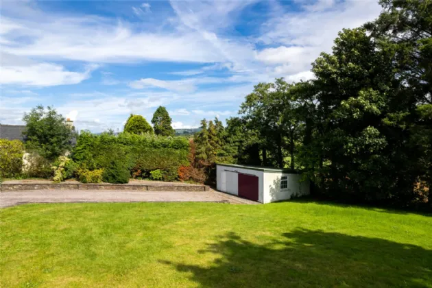 There are gardens to the front and side which are laid out in lawns interspersed with mature specimen trees and shrubs. The driveway is gravelled and allows parking for numerous vehicles. The patio area to the rear of the property is paved and also benefits from external lighting. There is a garden shed to the rear of the property’s site.