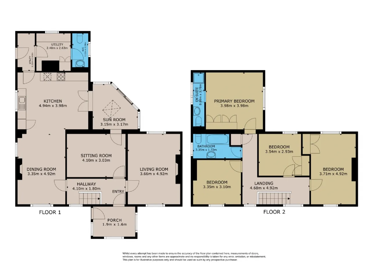 The house is a substantial and spacious 2 storey extended building. Ground floor accommodation consists of entrance porch, hallway, sitting room, living room, sunroom, kitchen / dining room, utility and wc.