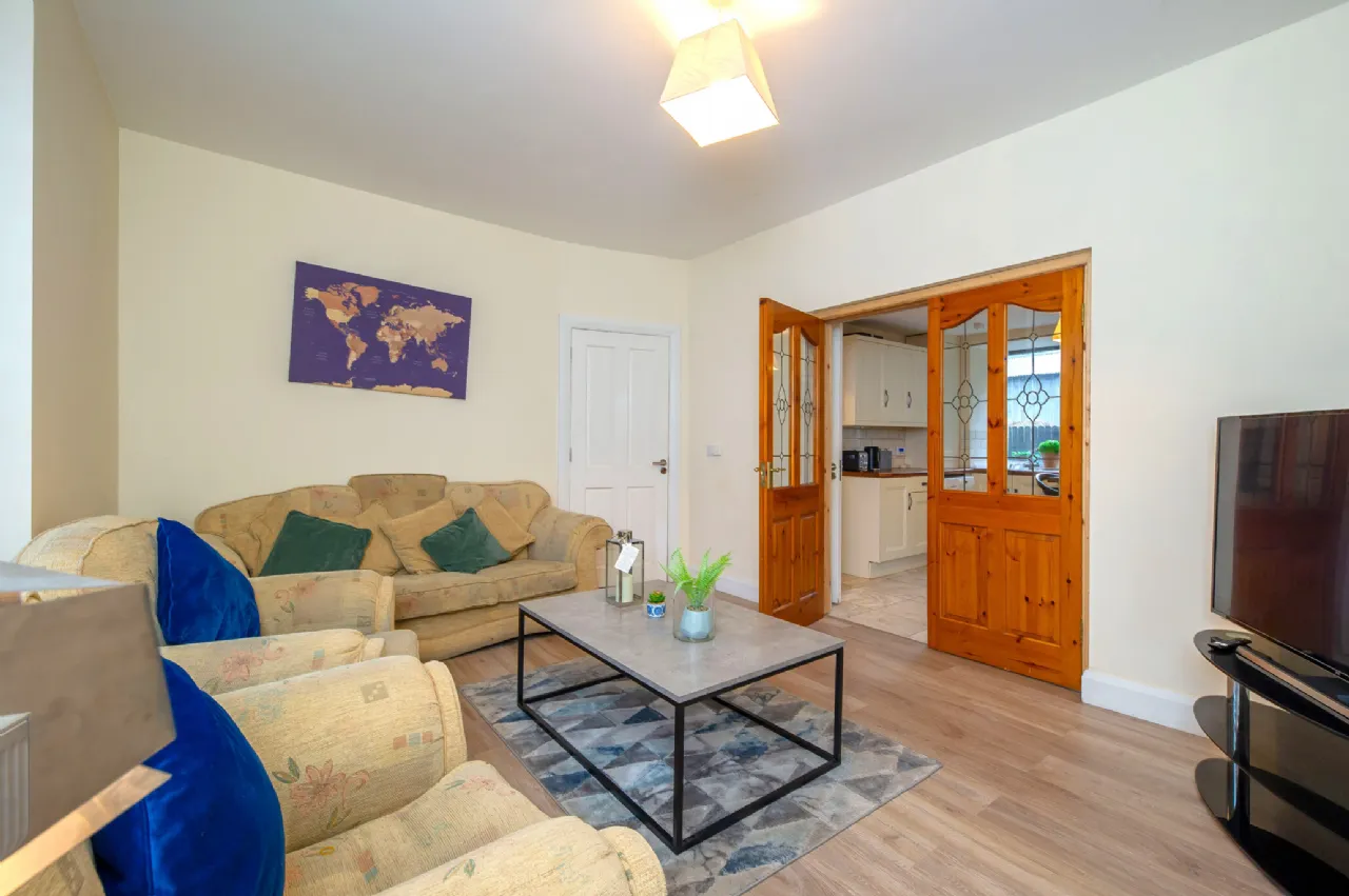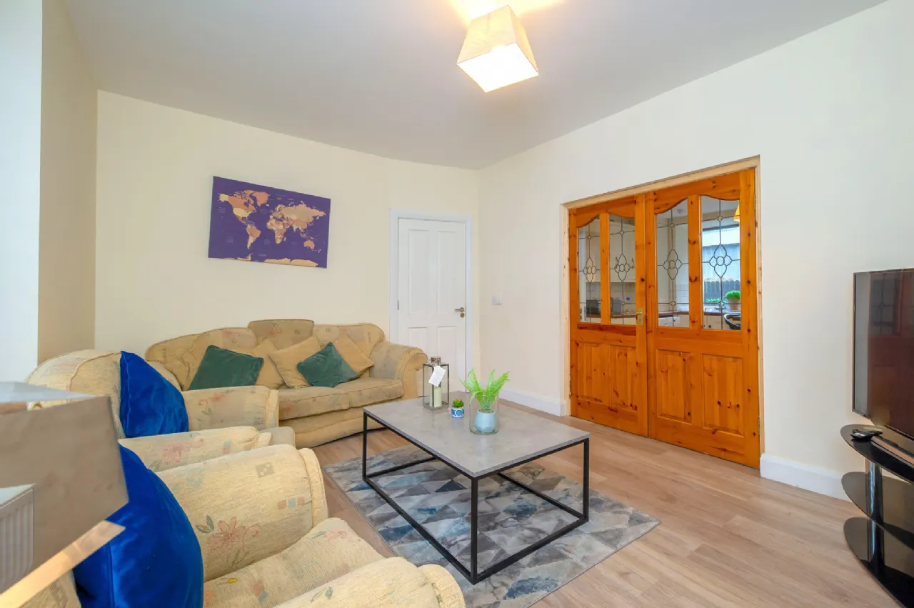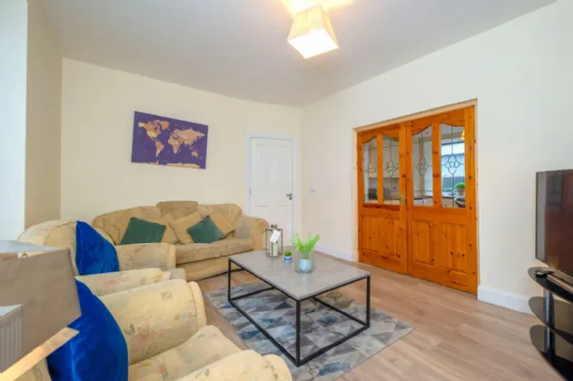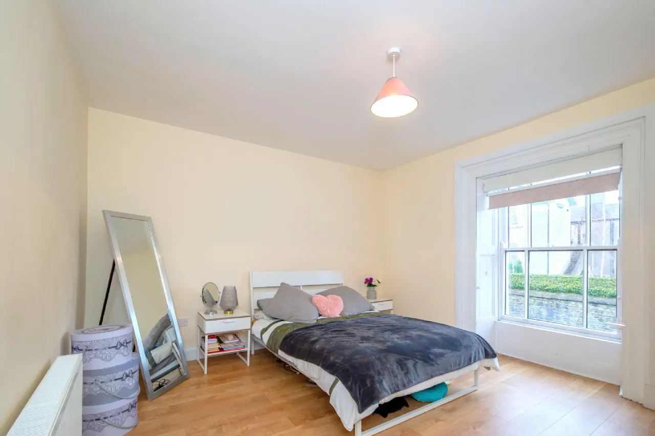 Sitting Room 4.5m x 3.5m Laminate flooring. Radiator. Large sliding sash window.
