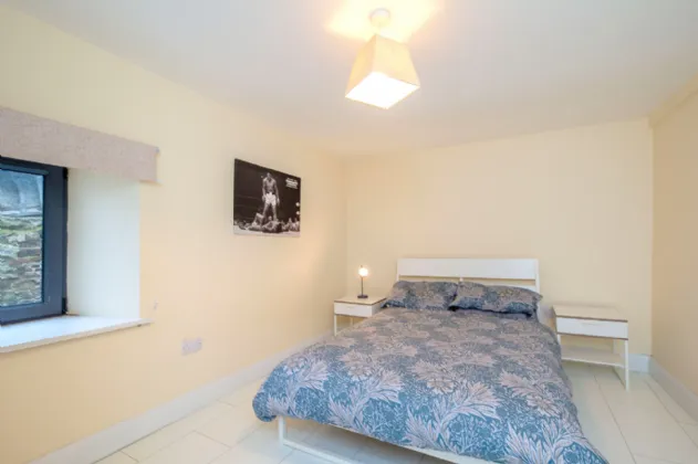 Bedroom 1 4.3m x 3m Tile effect timber flooring. Radiator.