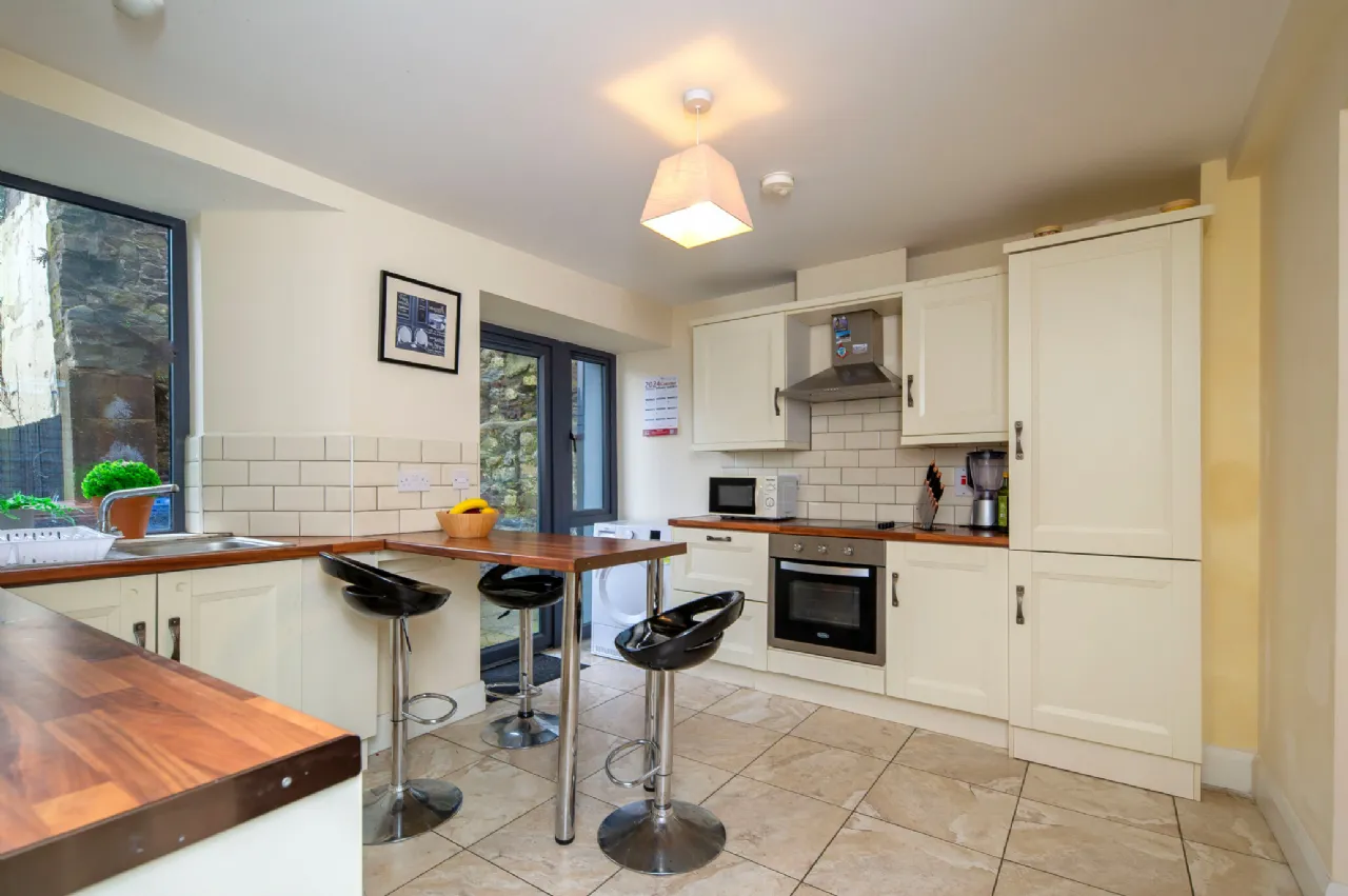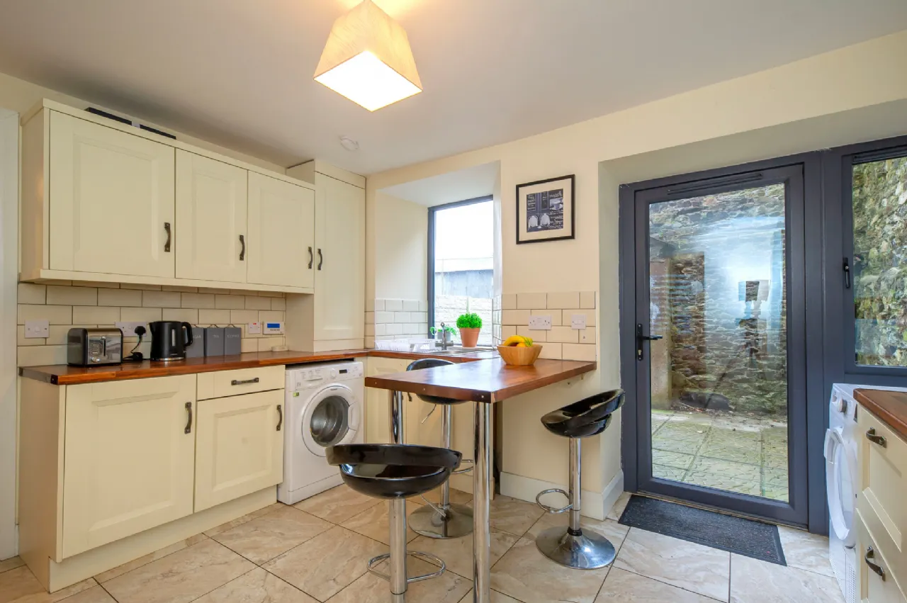 Kitchen Area 3.35m x 3.44m Floor and splashback tiling. Wall and floor units . Breakfast bar. Patio door leading to rear yard.