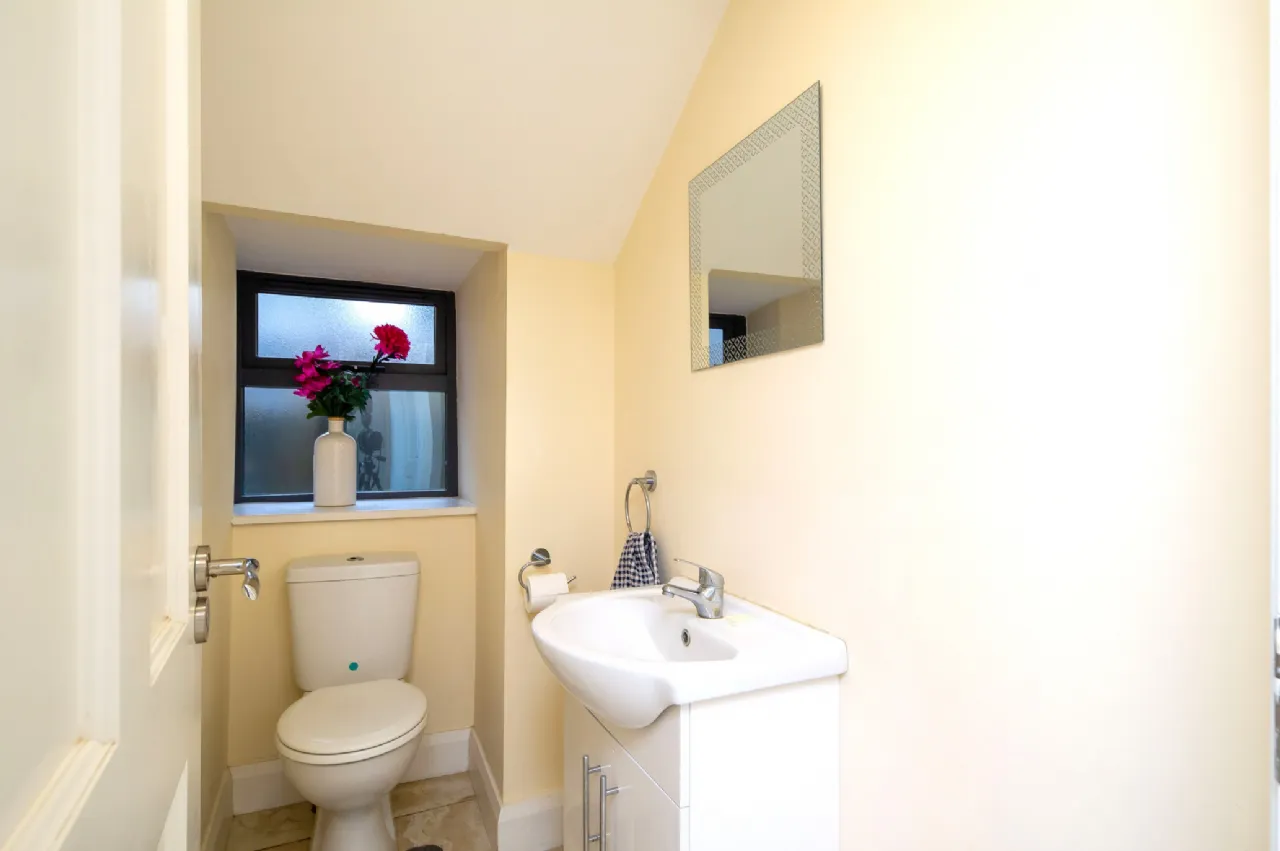 Downstairs Wc 2.1m x 1m Tiled flooring. Wc., whb and vanity unit.