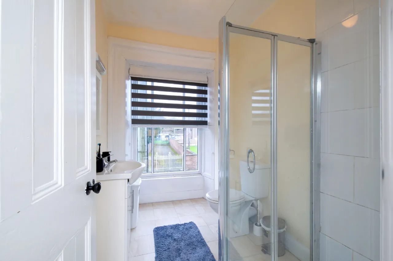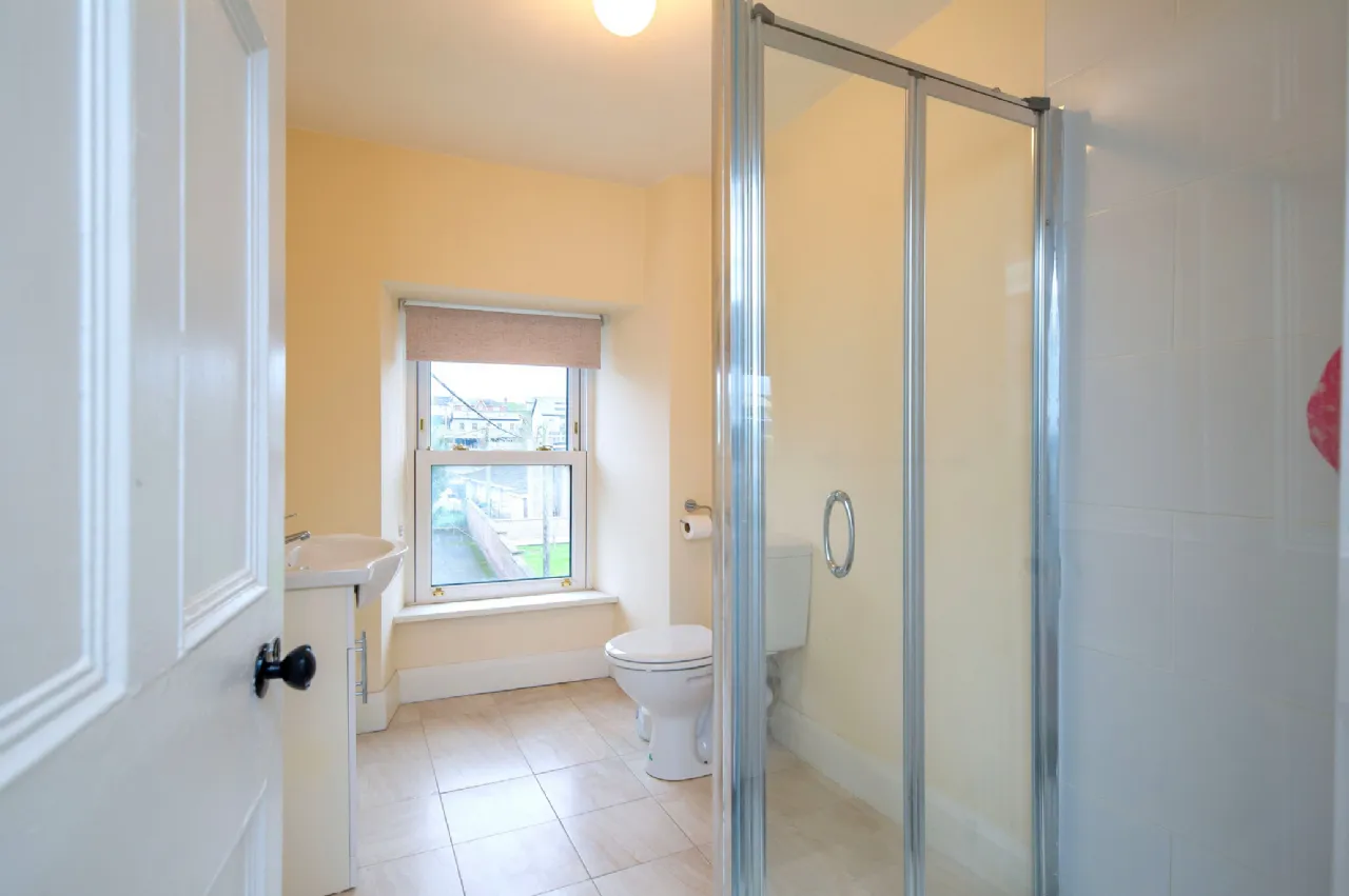 Bathroom 2.78m x 1.74m Tiled flooring. Vanity unit with whb., power shower. Radiator.