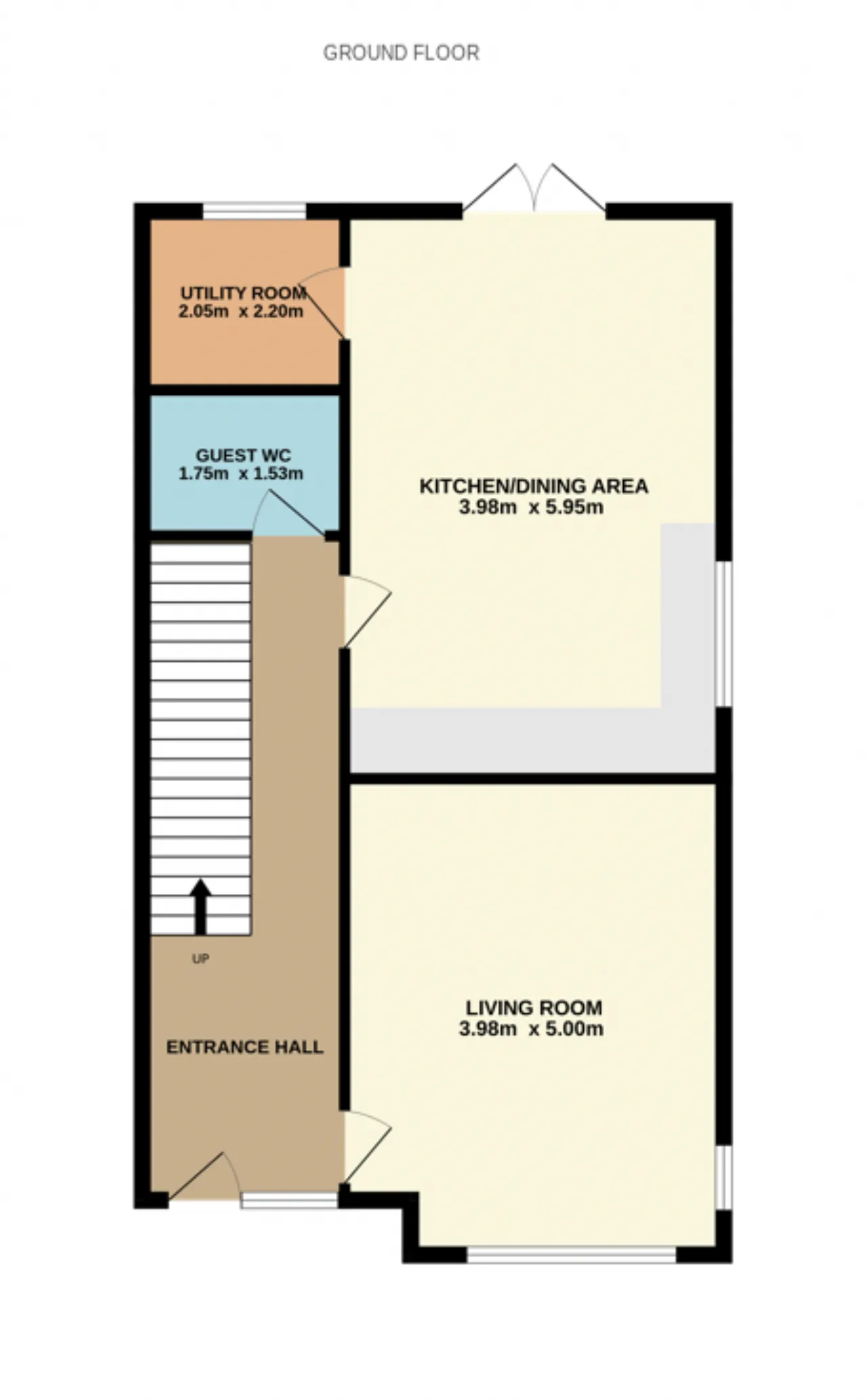 Guest WC 1.75m x 1.53m Two-piece suite benefiting from tiled flooring.