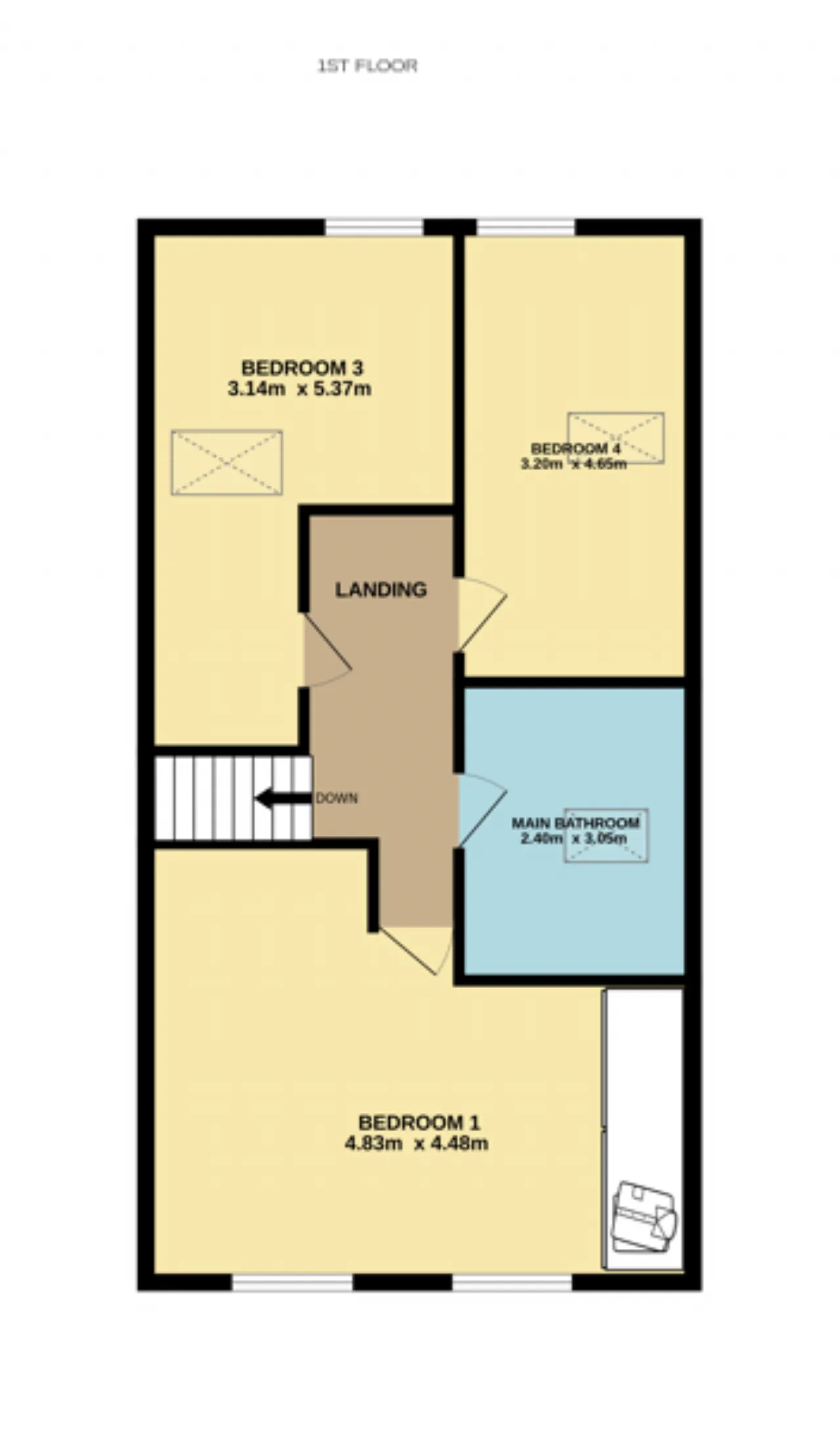 Bedroom 1 4.83m x 4.48m Large south facing double bedroom overlooking the front garden. Benefits from carpet flooring and built in wardrobes.