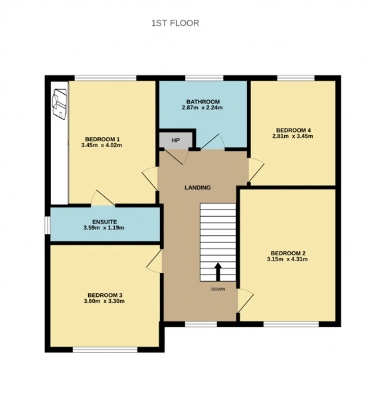 Landing 2.87m x 5.51m Large and open landing providing access to all rooms on the first floor benefiting from a stira which leads to a floored attic with potential for conversion (subject to PP).