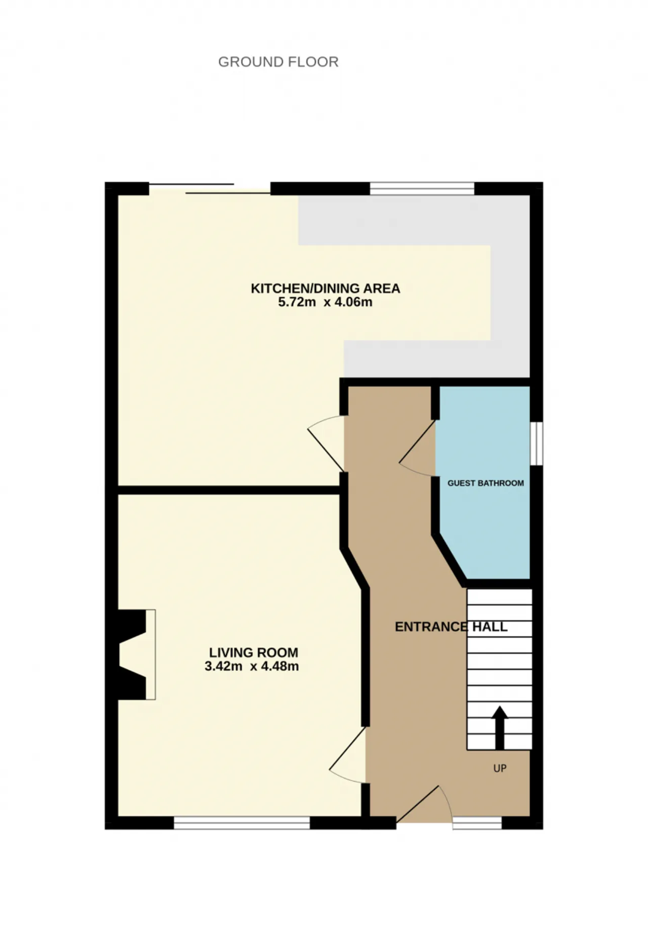 Guest Bathroom 1.36m x 2.71m Three-piece bath suite conveniently located under the stairs, benefits from tiled flooring and a tiled bath area.