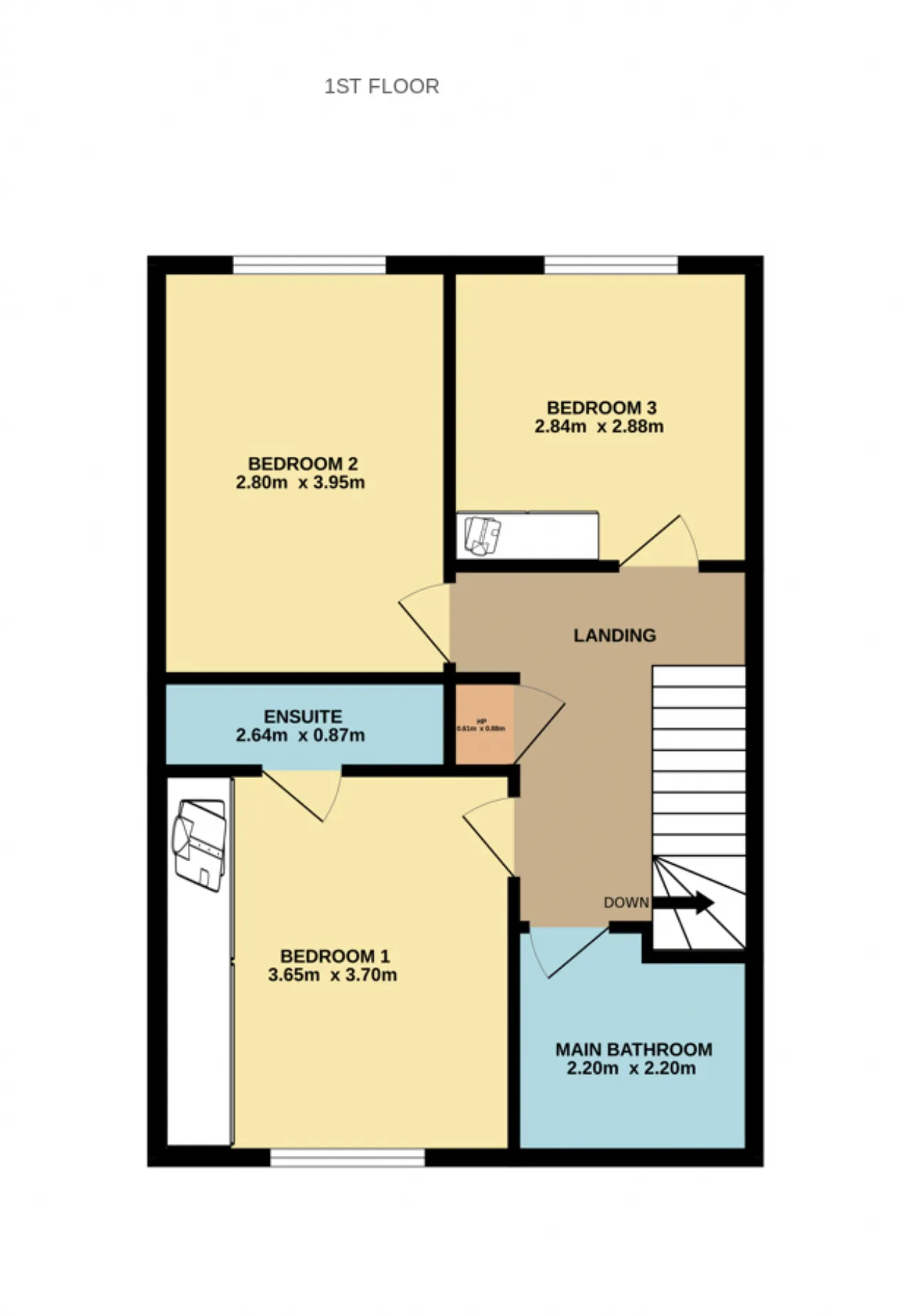 Bedroom 1 3.65m x 3.70m Large double bedroom to the front of the home. Benefits from built in wardrobes and an ensuite.