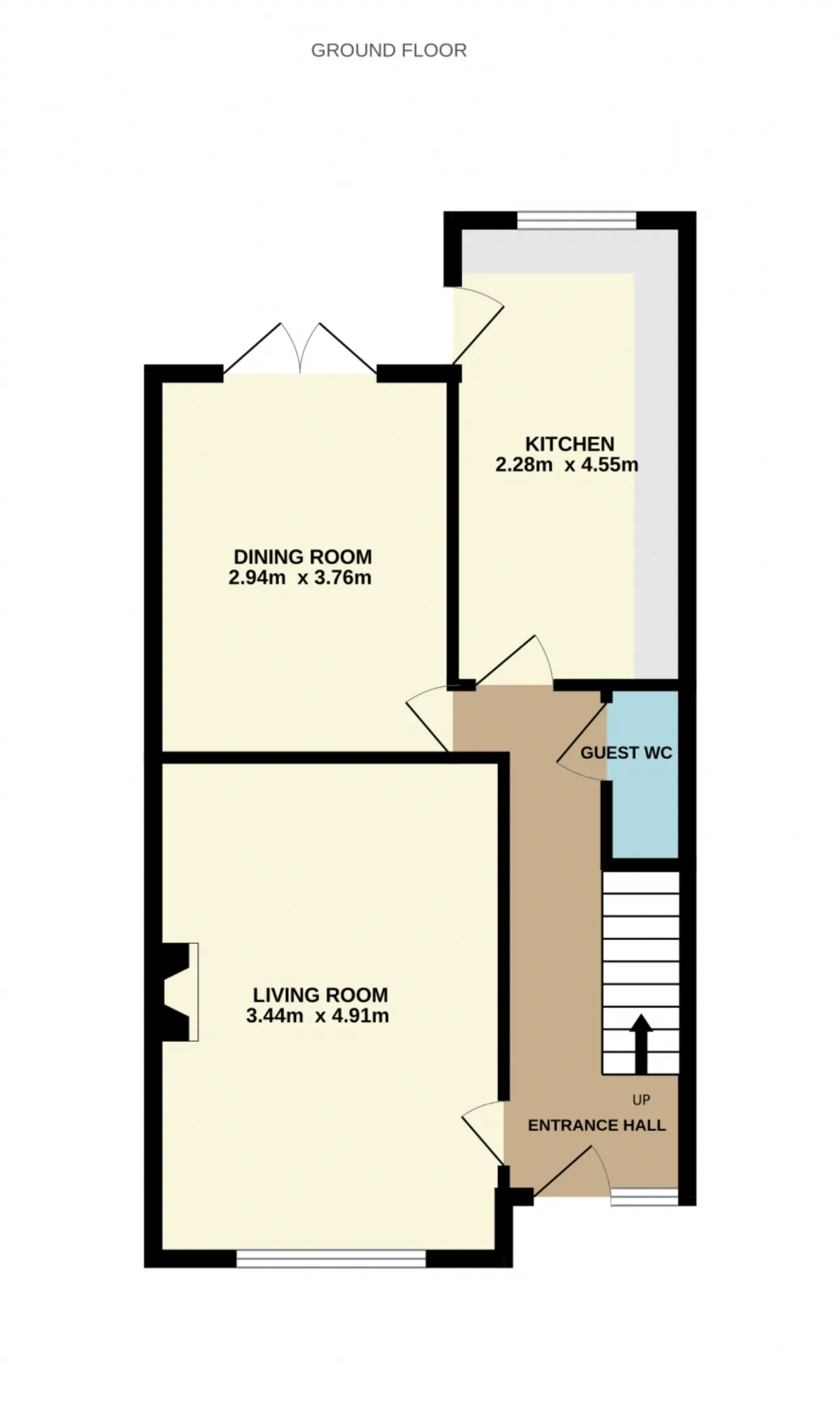 Dining Room 2.94m x 3.76m The dining room is an open reception space that overlooks the rear garden through a set of French doors, laminate wood flooring flows throughout.