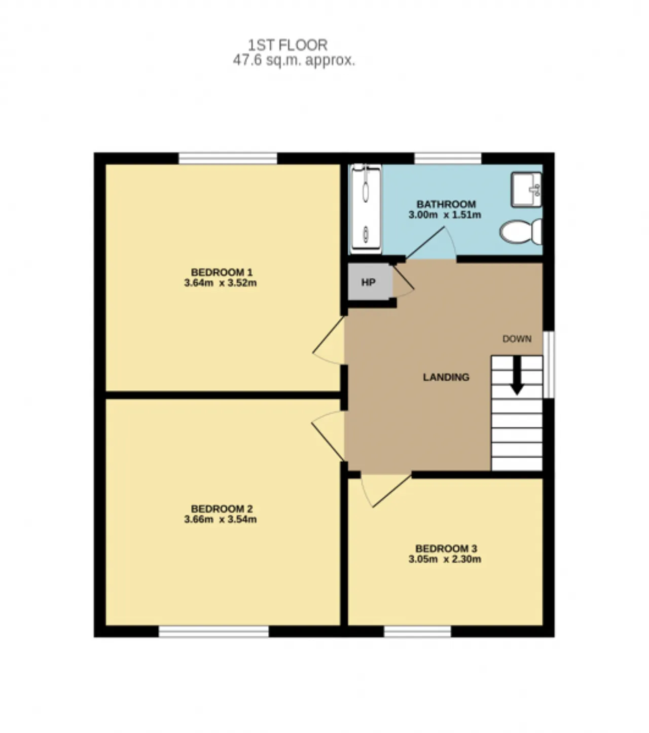 Family Bathroom 3.00m x 1.51m Fully tiled three-piece bath suite with an electric shower fitting. Quality bathroom accessories, heated towel rail and timber venetian blinds.