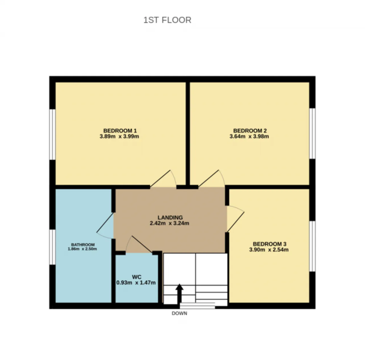Bedroom 3 3.90m x 2.54m Single bedroom positioned to the front of the property.