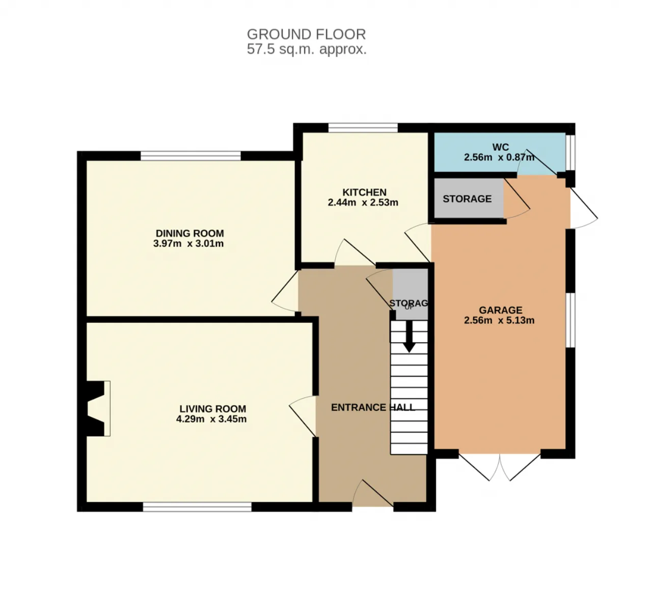 Garage 5.13m 2.55m Spacious garage which hosts the capacity to hold ample storage. Access to the back garden can be gained from here. The garage is ideal for conversion into additional accommodation (subject to planning).
