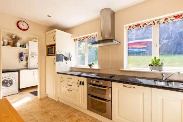 The house is an architect designed, spacious home with many enhancing features including tiled and wood floors, modern fitted kitchen units and a solid fuel stove in the living room. It also has the benefit of double glazed windows and gas fired central heating.