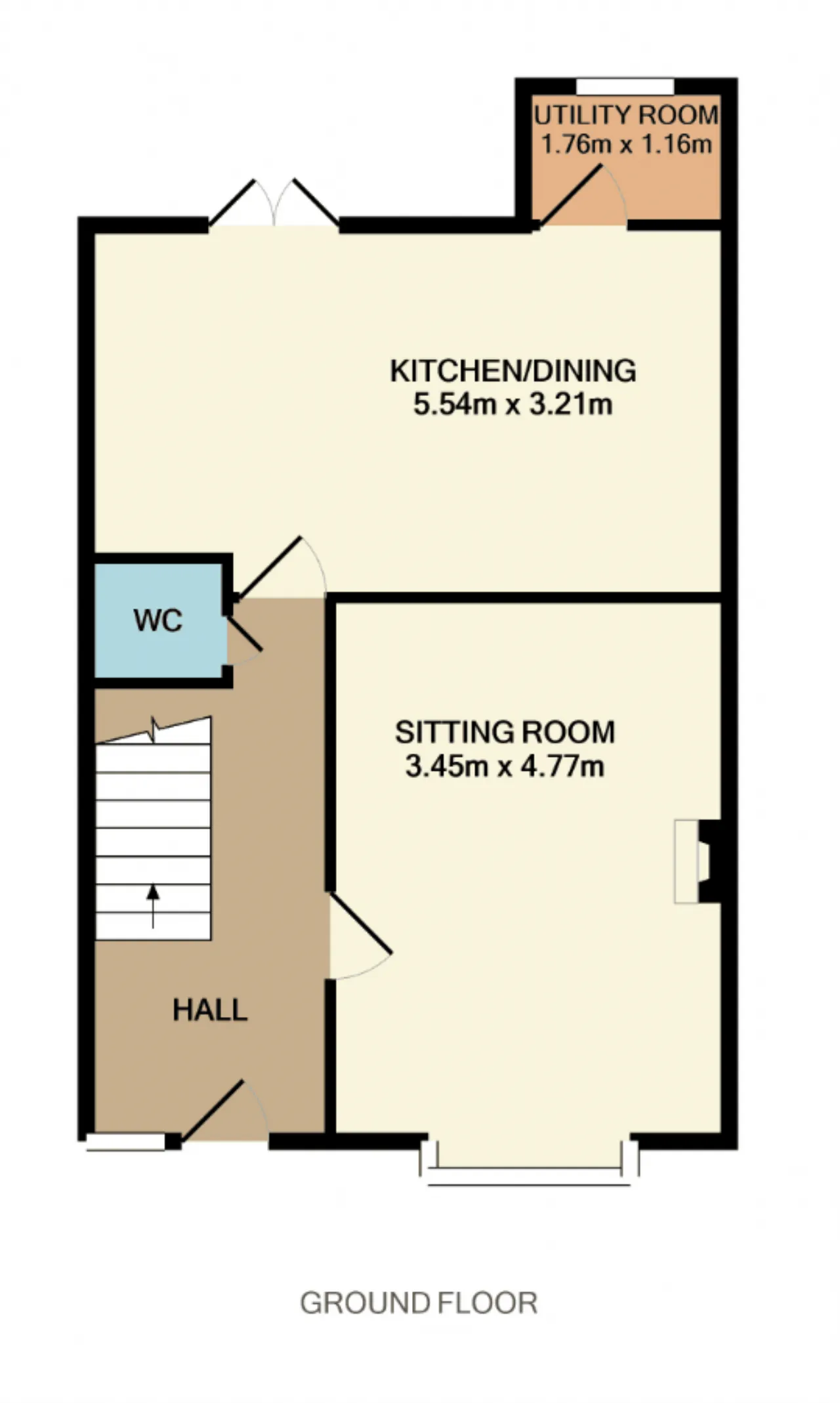 Sitting Room 4.79m x 3.45m A lovely reception room with a bay window to front of house. This room has a feature fireplace fitted with a gas fire and cornicing.