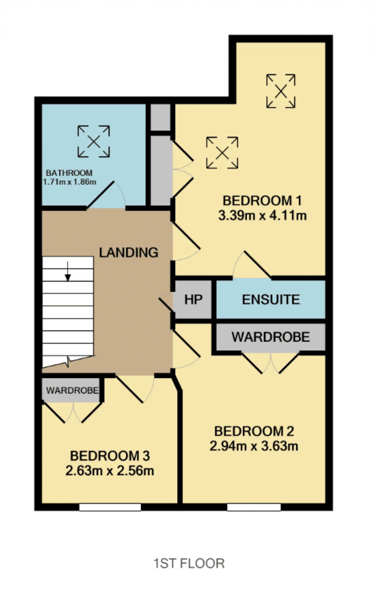 Bedroom 2 3.63m x 2.94m Double bedroom located to front of house with built-in slide robes.