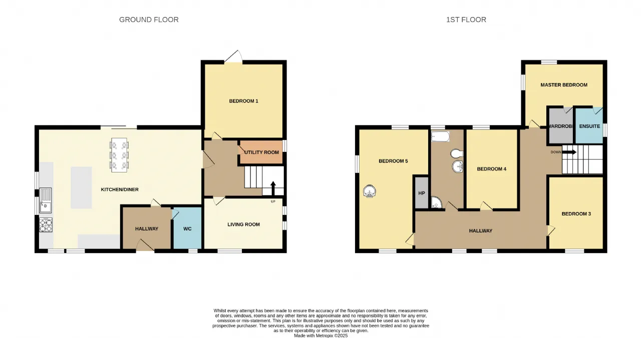 Accommodation consists of 5 bedrooms with master en-suite, lounge, kitchen/dining/living room, family bathroom, guest w.c and utility room.