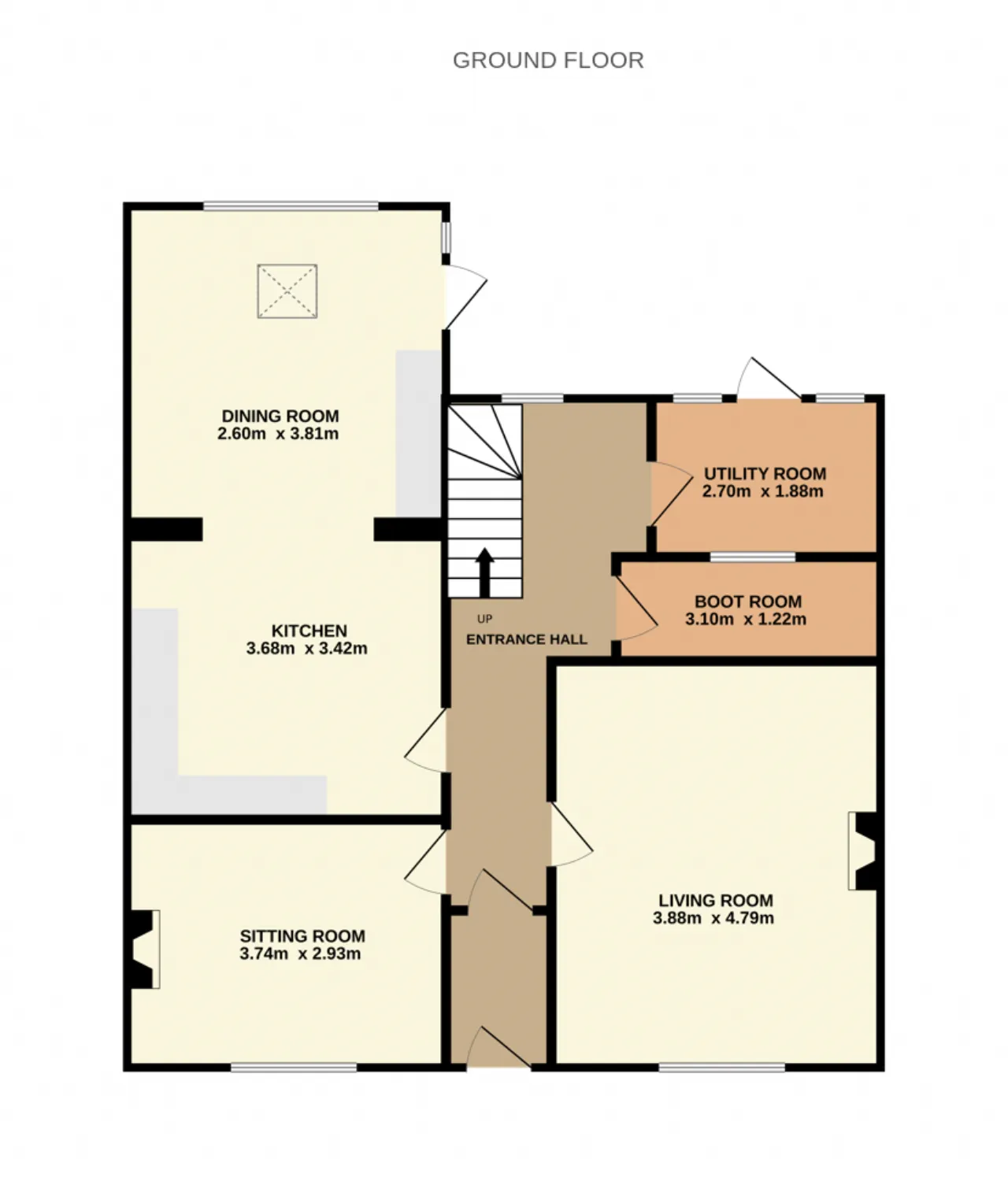 Boot Room 3.10m x 1.22m Currently laid out for additional storage, the boot room has terracotta tiled flooring and built in storage cupboards.