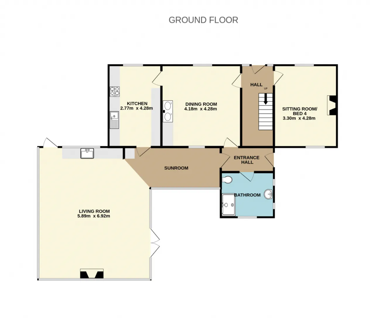 Sitting Room/Bedroom 4 4.28m x 3.30m A further reception room that could equally serve as a fourth bedroom. This room has a dual-aspect room and features an ornate cast iron fireplace with hardwood surround, ceiling rose and decorative cornicing.