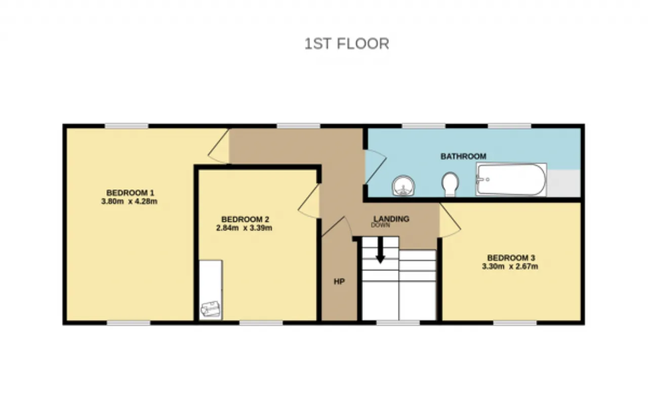 Bedroom 3 3.30m x 2.67m A double bedroom with carpet flooring and provides convenient access to the attic.