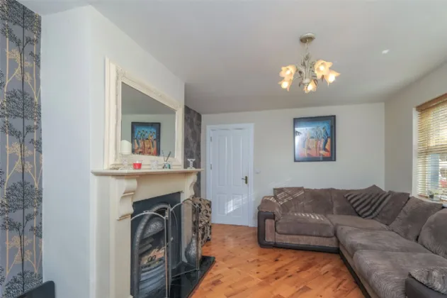 Sitting Room 4.5m x 3.4m Solid Wood Flooring. Solid Fuel Fire with feature marble surround.
