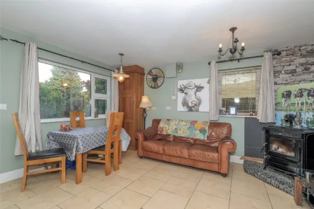 Kitchen/Dining 6.3m x 4.4m Open Plan Kitchen,Dining and living area. Tiled Floor. Fully Fitted kitchen with integrated hob and oven. Belfast sink. Wood burning stove. Sliding Doors to rear.