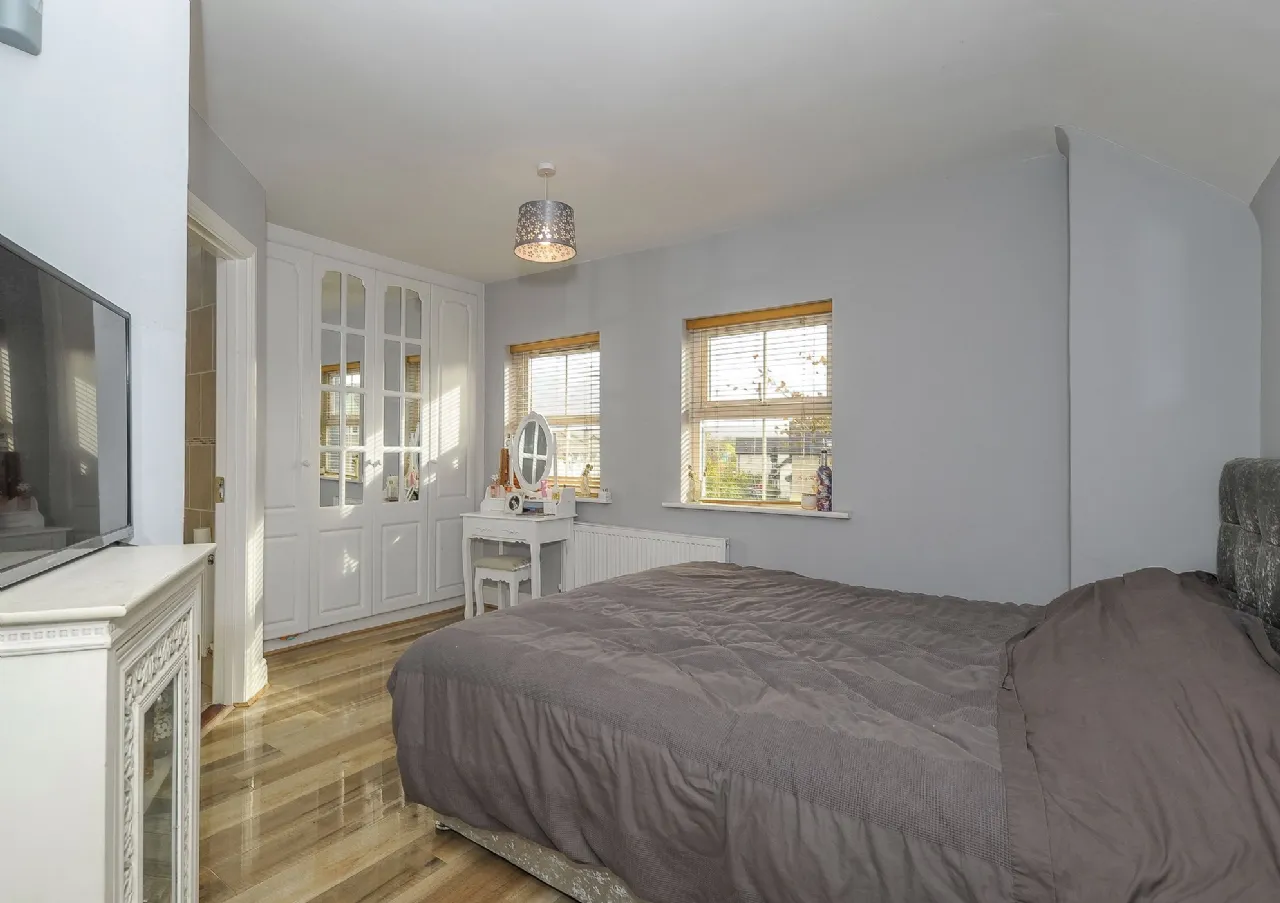 Master Bedroom 4m x 3.4m Laminate Flooring. Fitted Robes.
