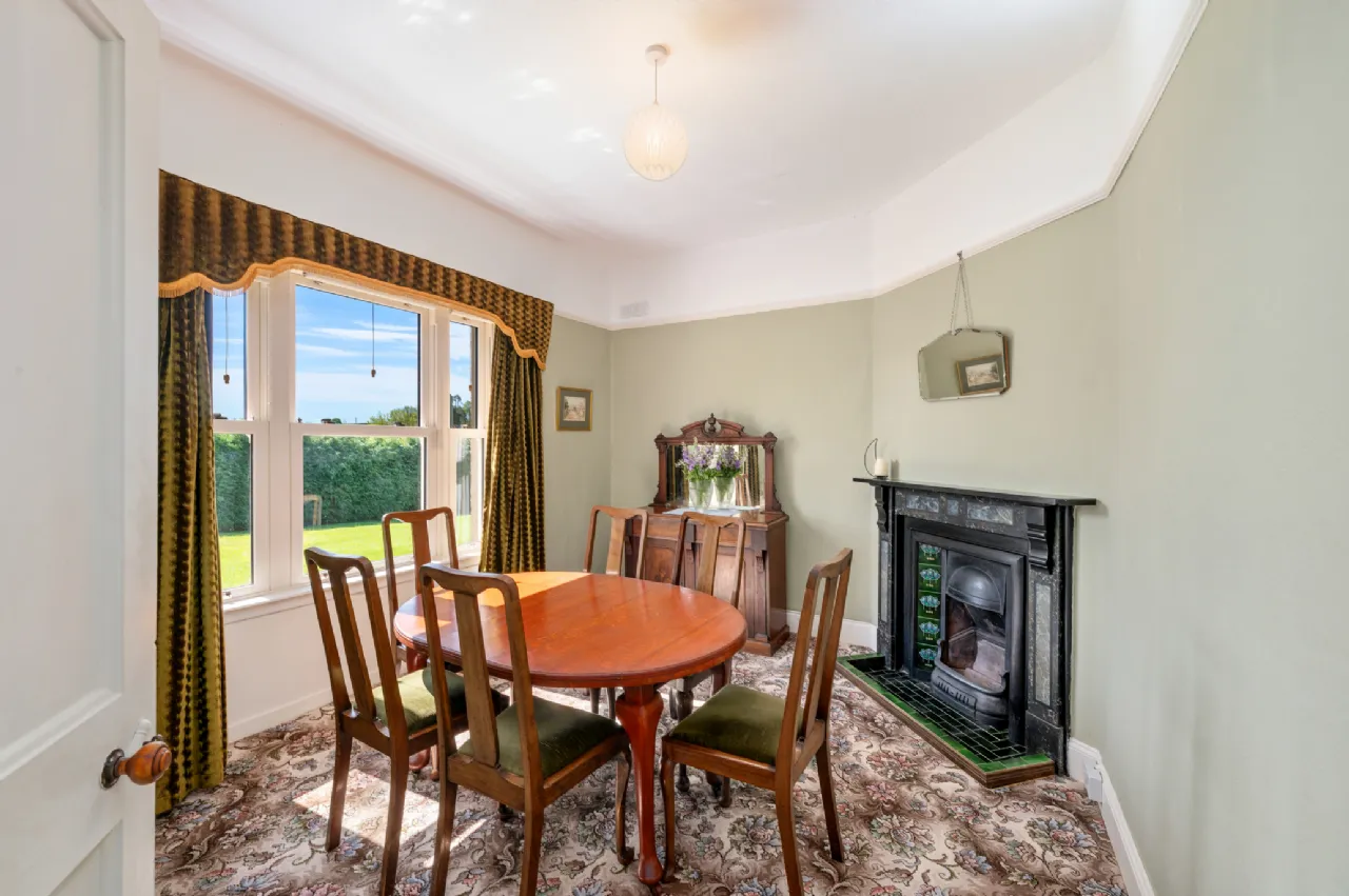 Dining Room 3.2m x 4m Carpet. Feature marble fireplace.