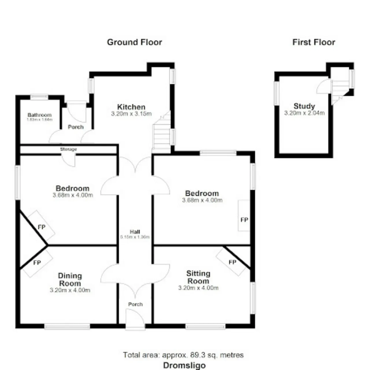 Sitting Room 3.2m x 4m Carpet. Dual aspect. Feature marble fireplace.