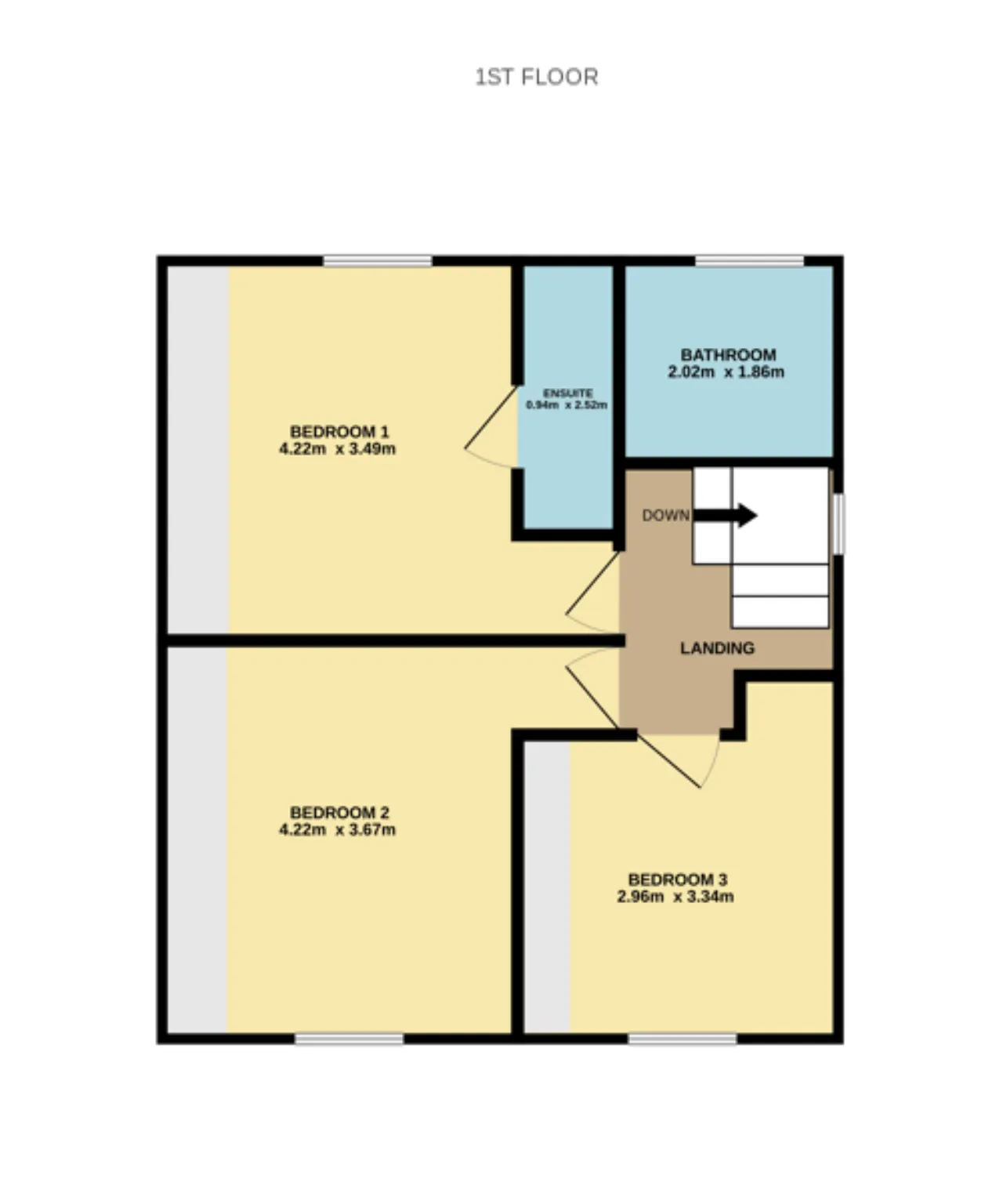 Bedroom 1 4.22m x 3.49m This is a double bedroom to the rear of the property with a large window overlooking the rear garden and the city. This room benefits from floor to ceiling wardrobes and an ensuite.