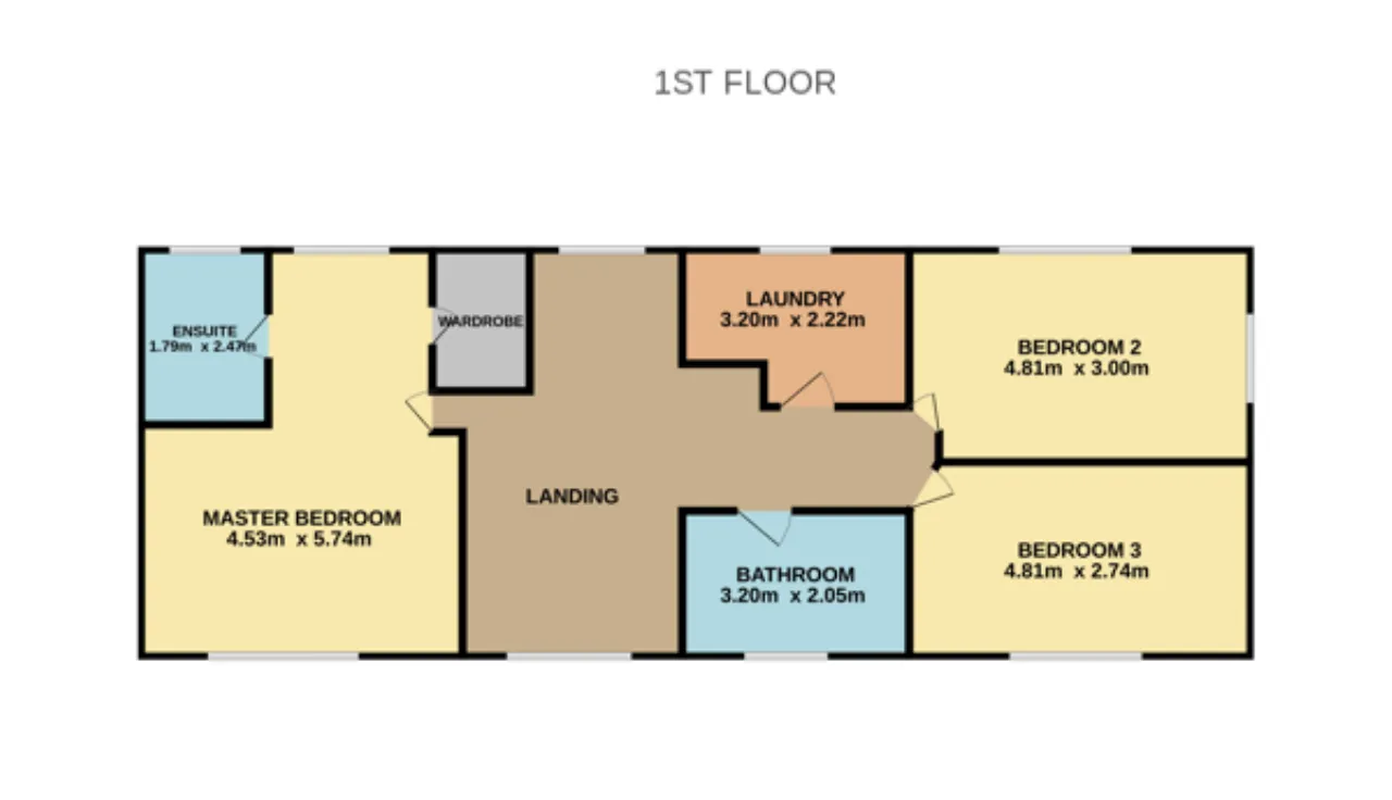 Study/Playroom 10.39m x 12.69m Large room with dual aspect. Suitable for study, home gym or playroom.