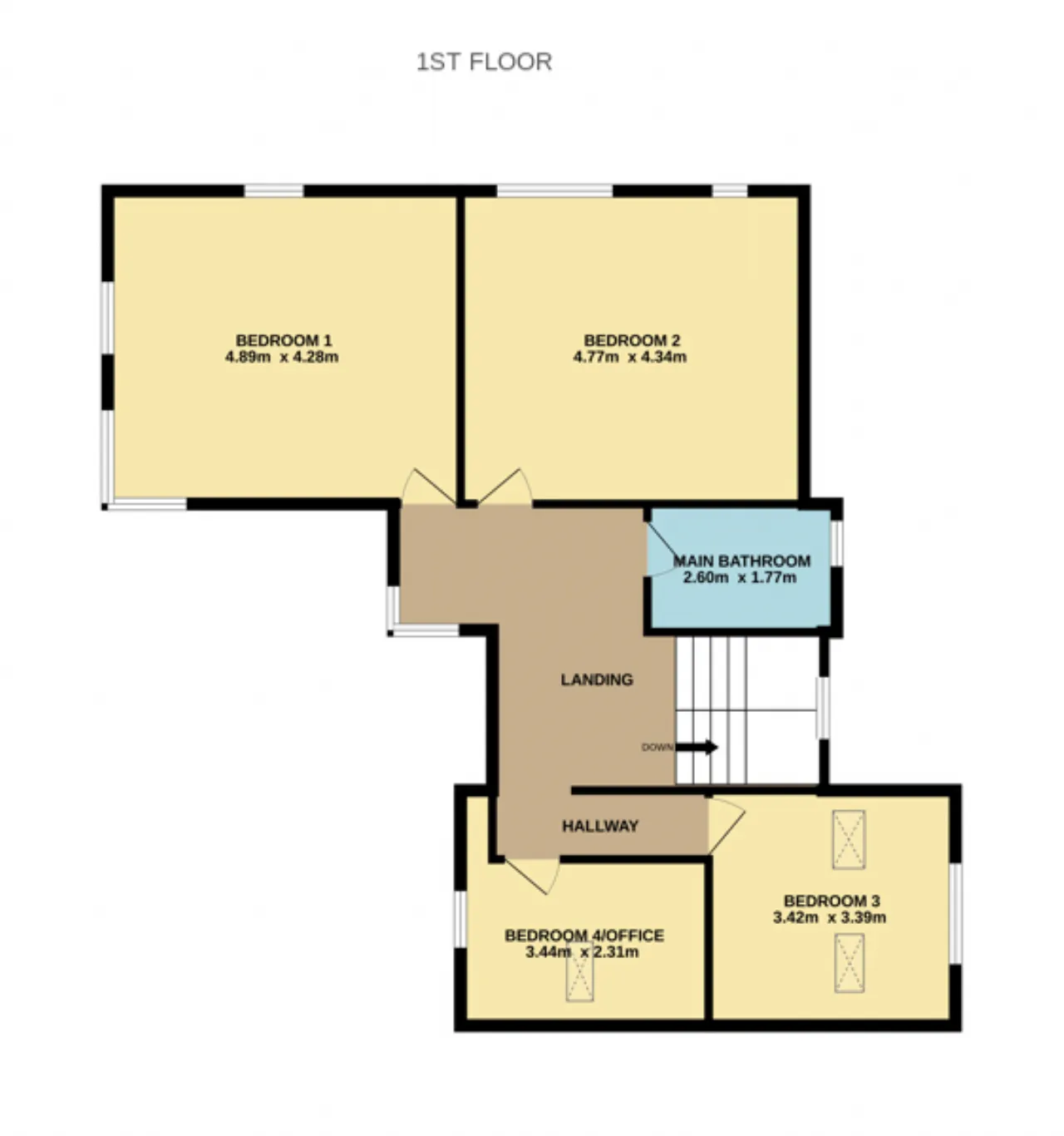 Bedroom 4/Office 3.44m x 2.31m Spacious double bedroom to the front of the property with wood flooring, currently being used as an office.