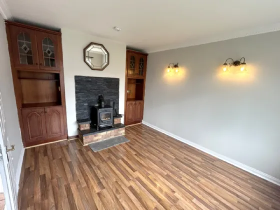 Sitting Room 4.1m x 3.2m Laminate flooring. Radiator. Solid fuel stove.