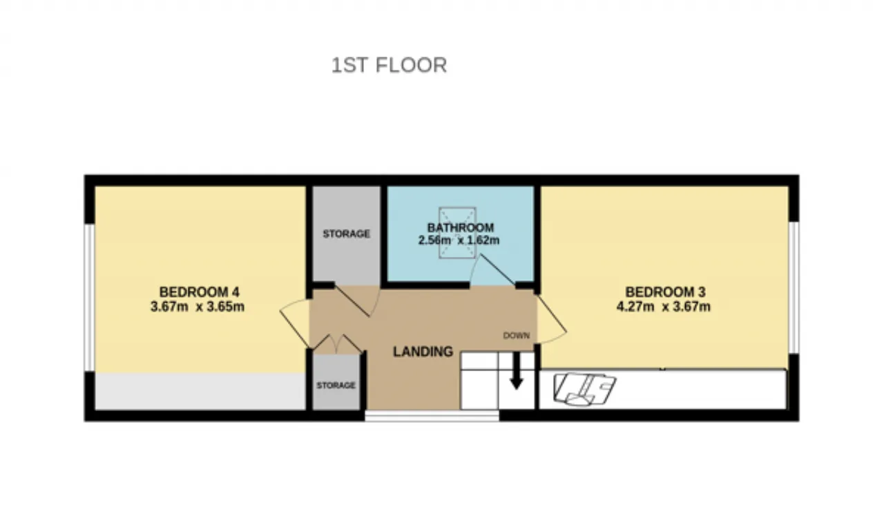 Bedroom 4 3.67m x 3.65m Double bedroom with a built-in countertop, carpeted floor and a large window with panoramic views across the cityscape.